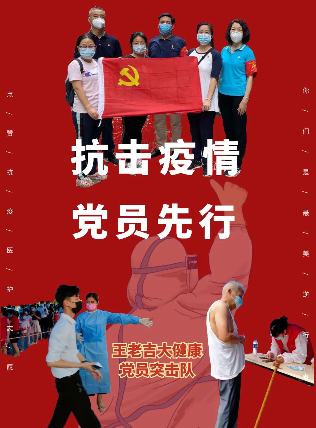近日,广州市出现新冠病毒确诊病例和无症状感染者,为快速有效阻断疫情扩散,保障广大市民健康安全,广州市实施新冠肺炎疫情分级分类防控管理。广药集团众志成城、合力抗疫,持续加码行动,组建志愿者、物资分队,在核酸检测点、疫苗接种点重点场所提供支援,用实际行动力撑广州。王老吉大健康党员干部响应集团号召,奔赴疫情防控第一线,全力支援各区核酸检测工作,把党旗高高飘扬在疫情防控战场上,充分发挥党组织战斗堡垒作用和党员先锋模范作用,冲锋在前、勇挑责任,在疫情防控工作中争当排头兵!
