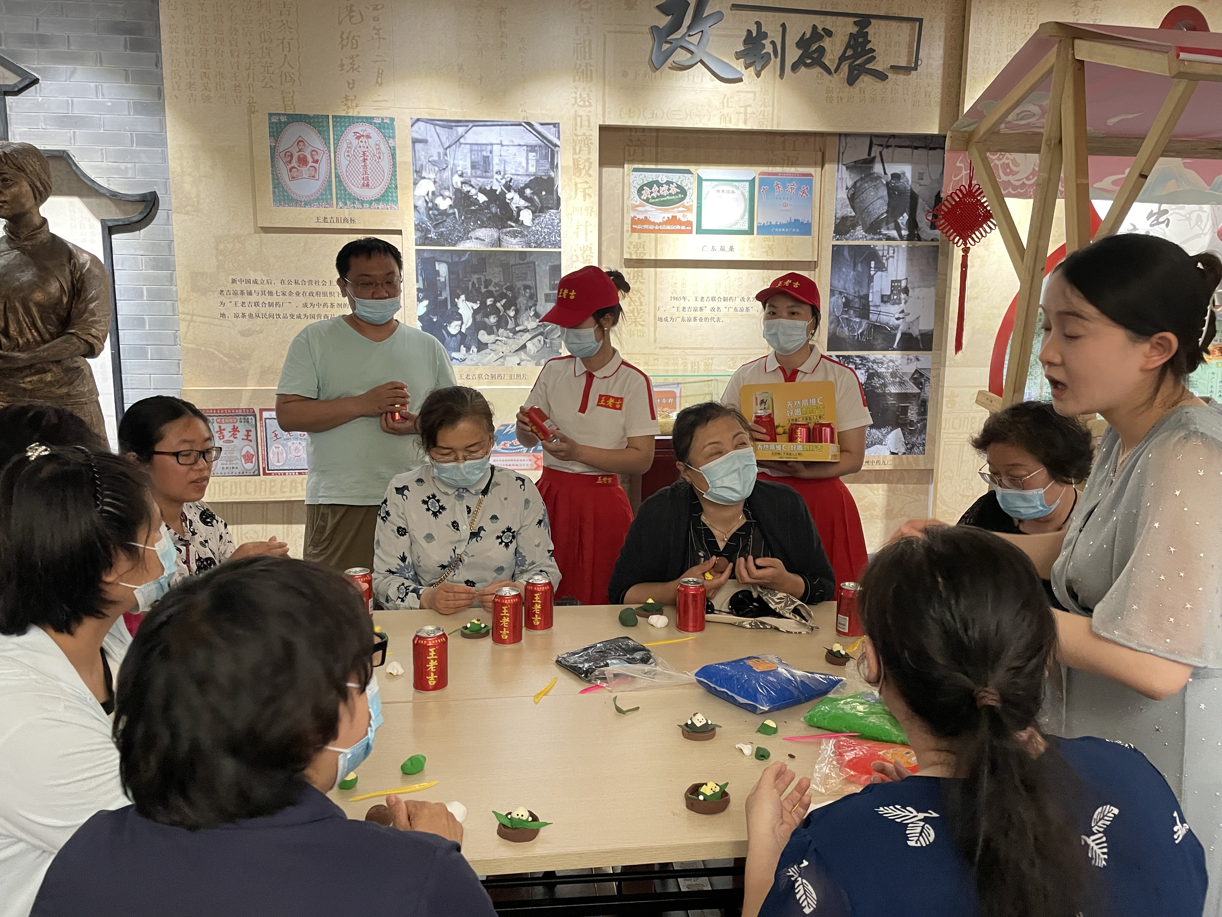 活动现场特设了王老吉凉茶文化、广州神农草堂中医药博物馆的花车展示,展示神农草堂的文创产品,并请街坊邻里试饮新品刺柠吉等。同时,馆内设置非遗项目互动区域,精选了北京鬃人、面塑、彩塑京剧脸谱、北京兔爷、端午香包五个非遗项目,数位非遗传承人到场为大家展示技艺、教学指导。来自27个社区近60余名居民参加制作。通过亲自动手体验,大家纷纷表示被非遗传统文化的魅力所吸引,想要推荐给身边更多的人去尝试体验。