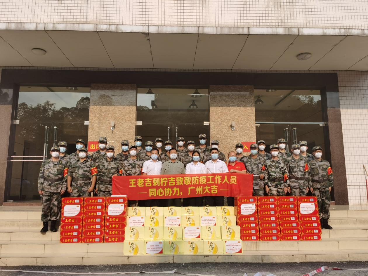 6月7日,广药集团工会、武装部与王老吉慰问防疫战线应急民兵并捐赠一批王老吉、刺柠吉天然高维C饮品