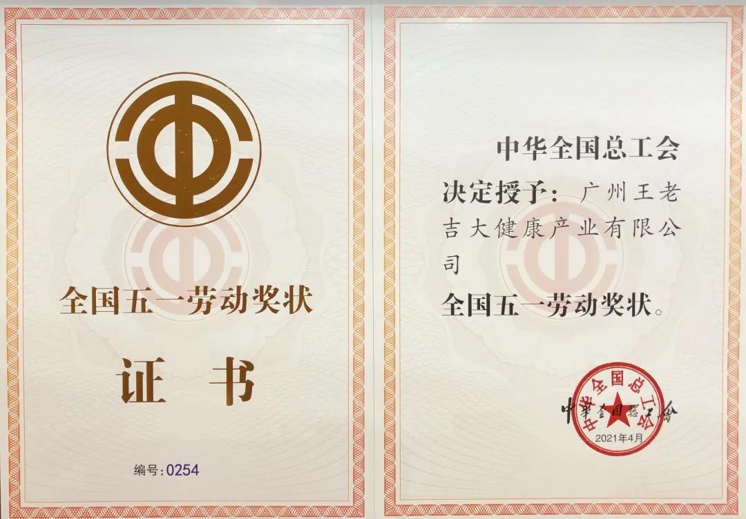 王老吉大健康荣获2021年“全国五一劳动奖状”