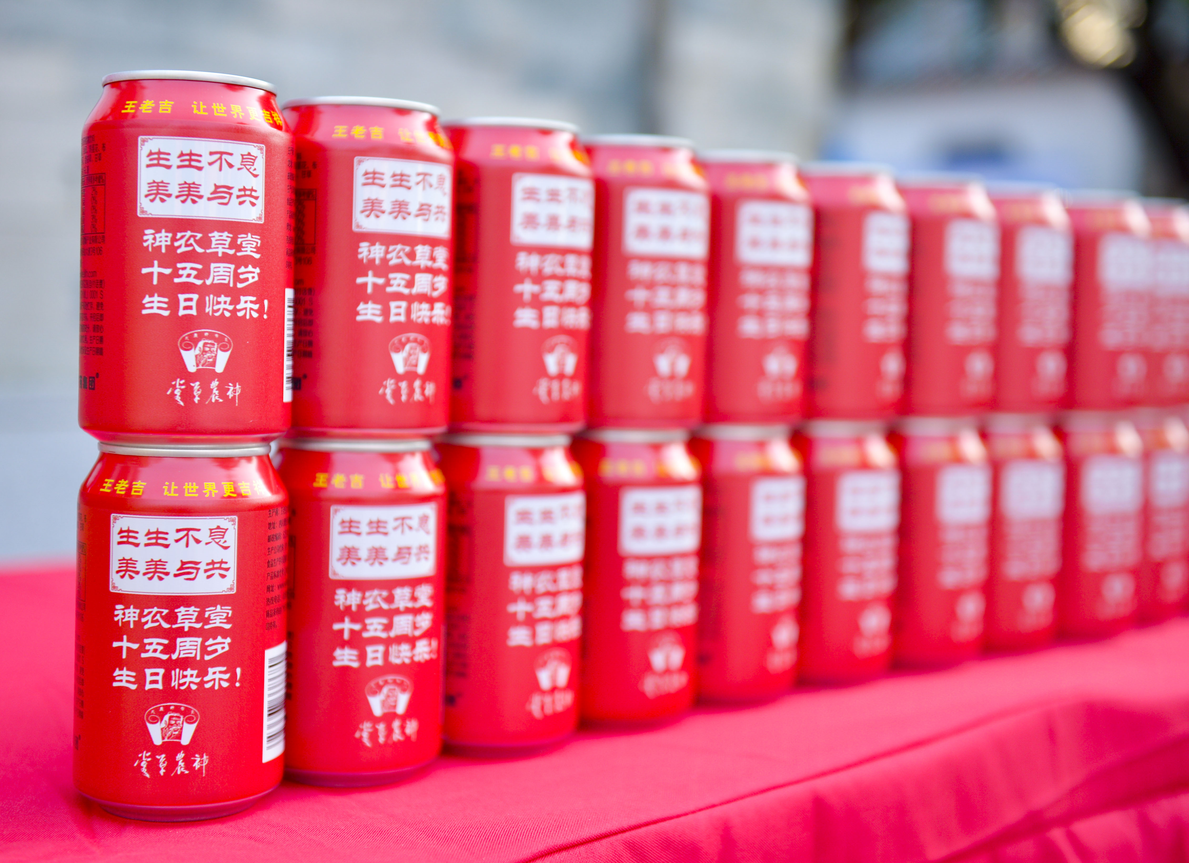 庆典当天,公司副总经理叶继曾出席“吉文化”联名创意产品发布仪式。同时,王老吉在园区内设立王老吉、刺柠吉两个分会场供与会人员饮用。王老吉还特意定制了一批限量版的庆生罐,为神农草堂的十五岁生日送上最美好的祝福。