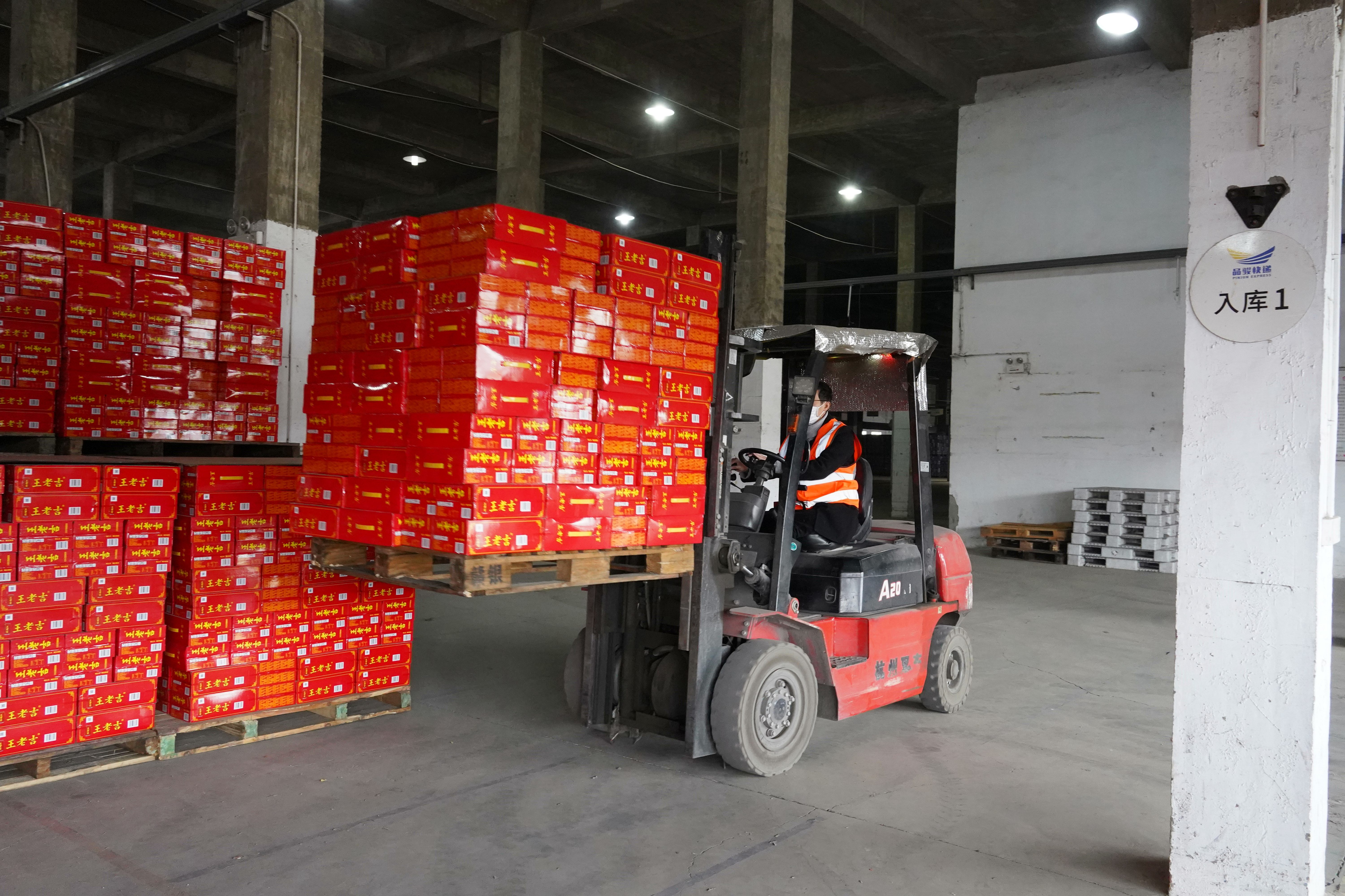忙碌的物流中转仓。