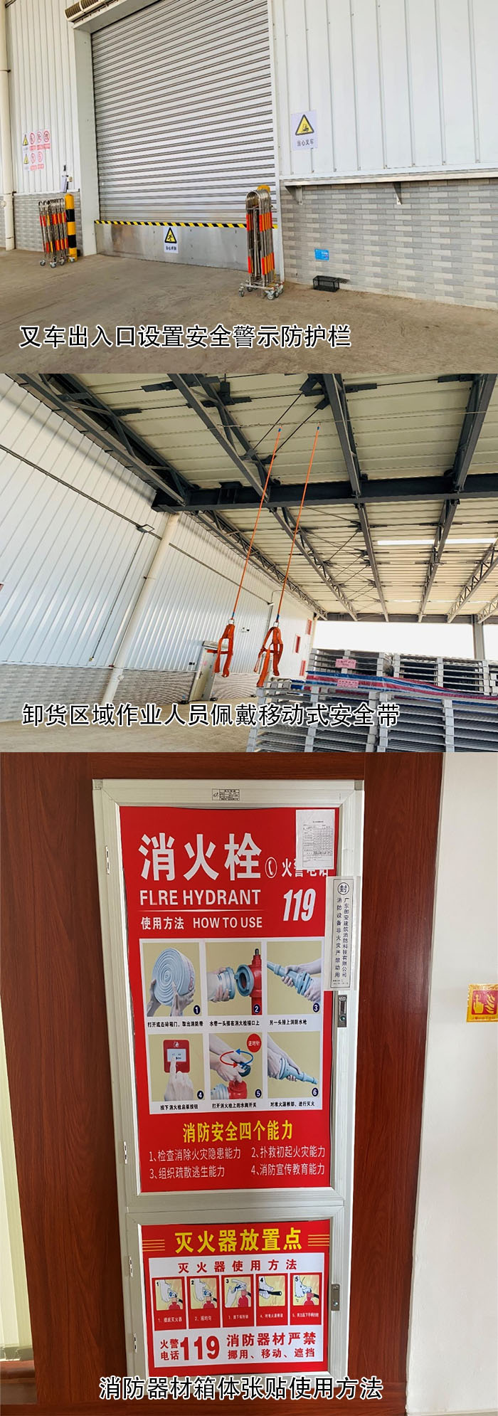 考核组在检查过程认为梅州公司在安全生管理的五大亮点值得肯定:一是在高温、危险区域设置防护栏,完善本质安全;二是完善子公司有限空间作业审批的提级管理,作业审批需总部相关权责领导审核;三是在叉车出入口设置安全警示防护栏,保障作业安全;四是卸货区域作业人员佩戴移动式安全带的安全保障工作基本落实;五是消防器材箱体正确张贴使用方法。