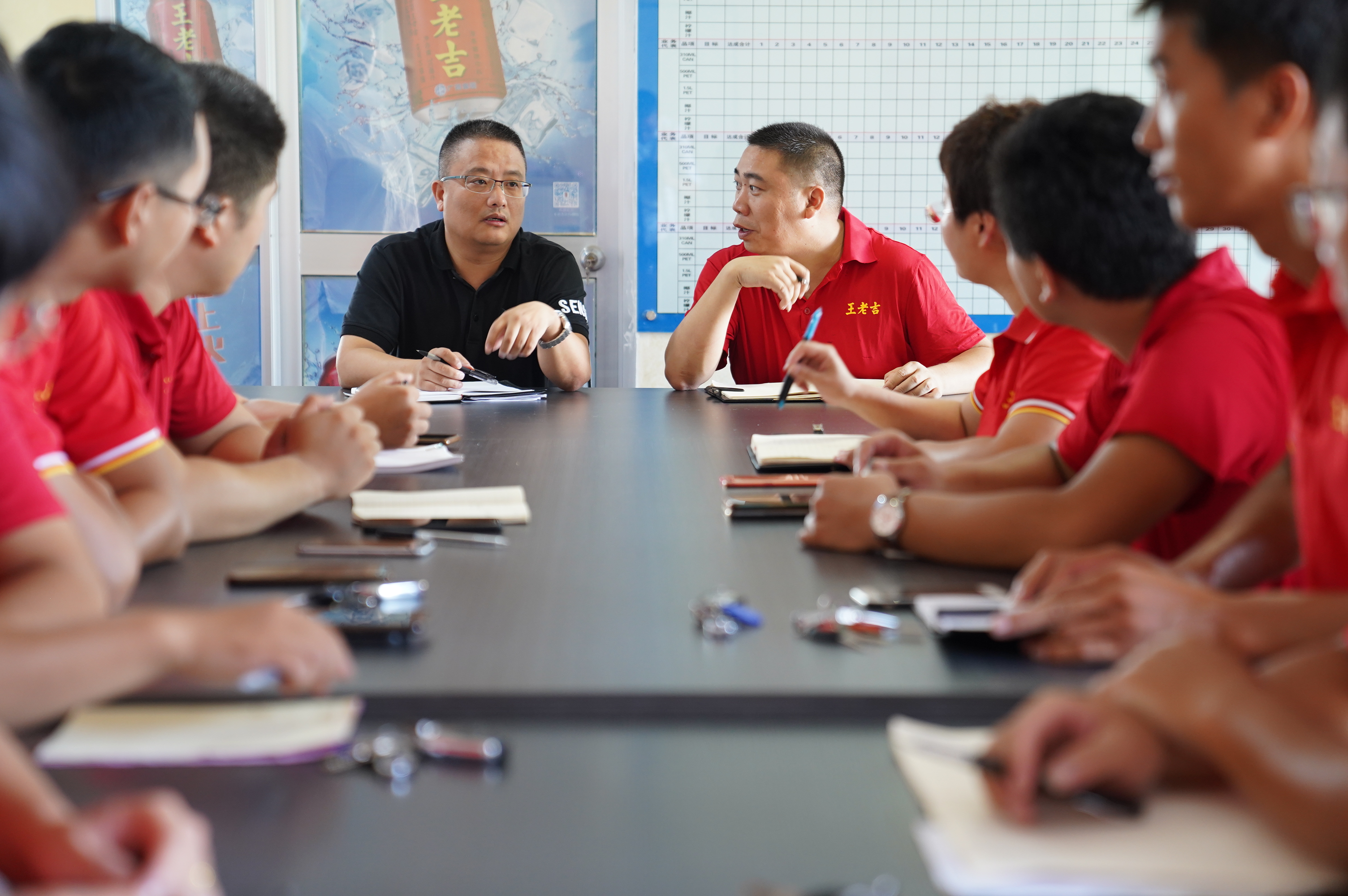销售四部浙东大区台州办的销售业务员正在开早会,布置如何应对中秋档的特殊销售任务。