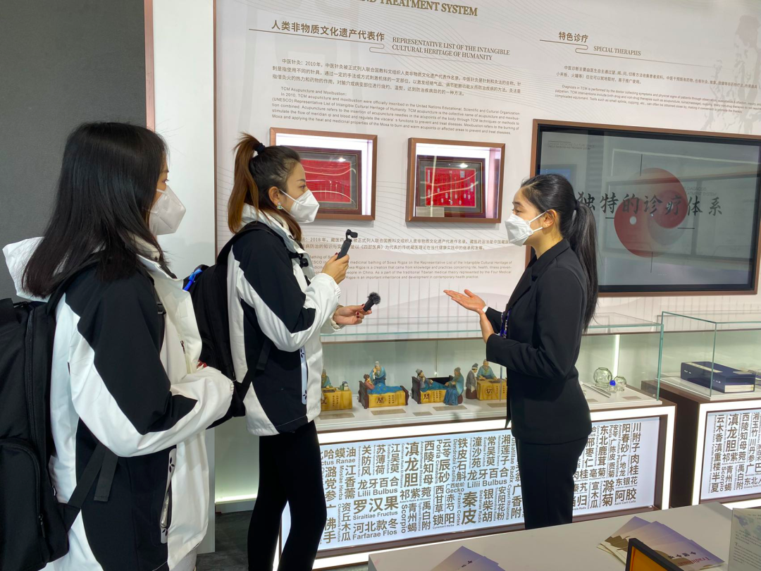 “刚开始讲解的时候,我还是有些不适应,不同国家的外国友人发音都有些不同,沟通难免有些不畅顺,不过来参观的外国友人都很nice,在我紧张的时候,还让我‘take it easy’,不要着急慢慢来。”然而,赵莉莹却没有放慢自己的“速度”:为了更准确讲出每一个生涩的专业词汇,她在厚厚的讲解稿上做满了标记,跟着翻译软件一遍遍跟读;为了更加深刻了解各个板块的讲解内容,她在网上搜寻大量相关知识典故以及知识点的来源;为了更好向外国媒体讲述中医药知识,她反复推敲讲稿,还尝试着把一些生僻的专业词汇化繁为简,以更加通俗易懂的方式,向来访者解释展馆里的内容,“希望通过我们的讲解,可以让更多前来参观的人真正了解中医药文化,甚至主动传播中医药文化。”