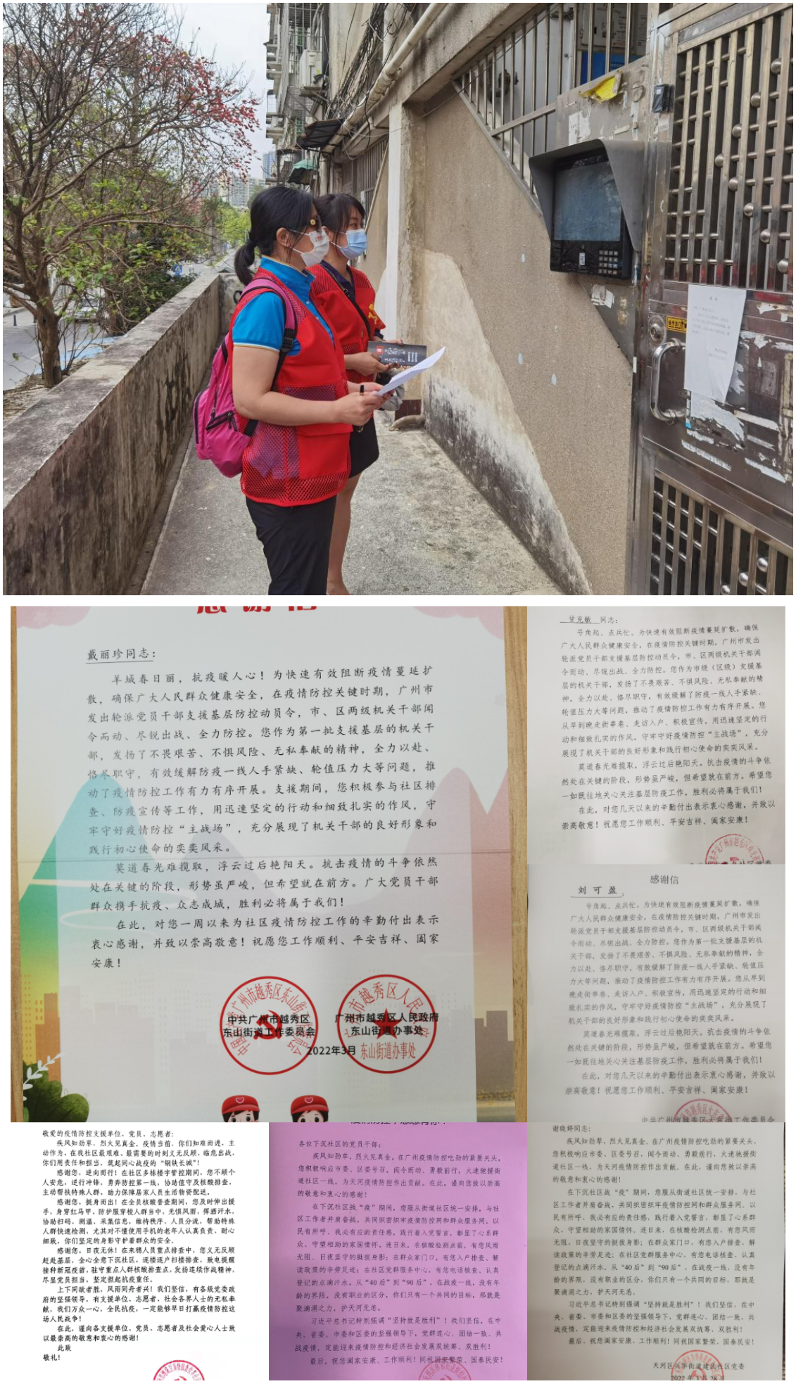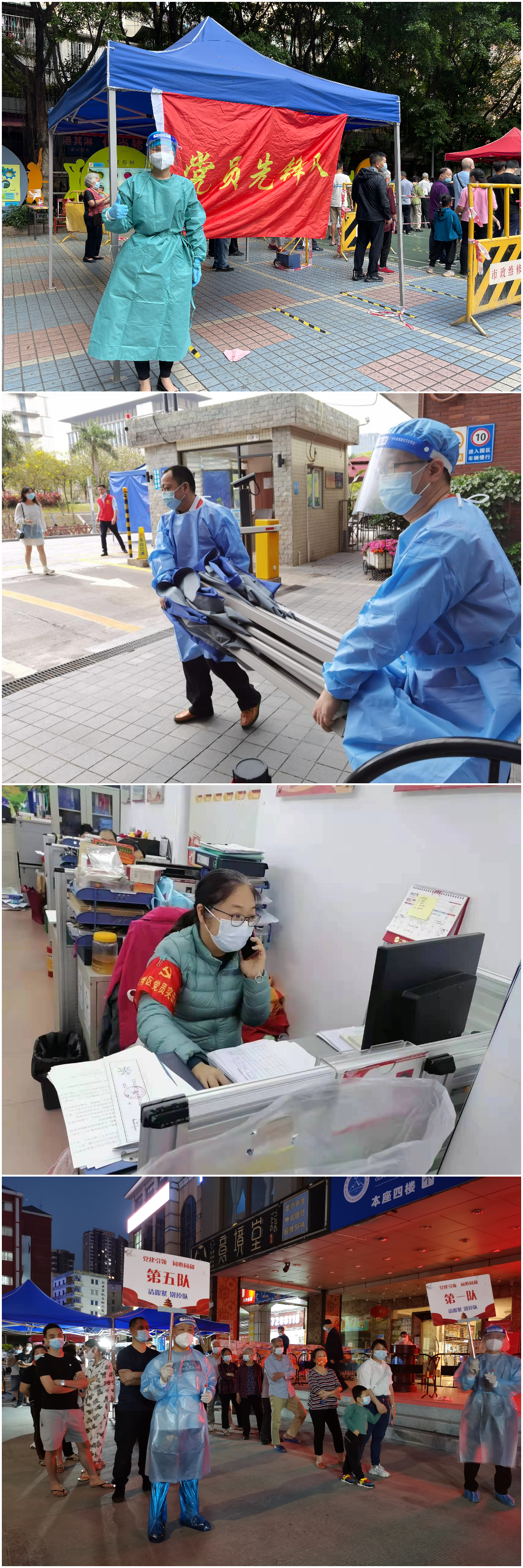 疫情就是命令,现场就是战场。28天以来,大健康每天派出40人的支援队伍,累计派出志愿者近千人次。党委委员发挥“头雁效应”,带头参与志愿服务。党委委员蔡涛和梁全心等四位同志在居住地协助社区开展核酸检测工作,工会主席梁全心同志作为第一批志愿者,连续五天奋斗在抗疫一线,未曾有一刻停歇;团委紧跟党委部署,组织青年团员志愿服务队到天河南街道参与疫情防控志愿服务,他们的先进事迹获广州日报、广州青年志愿者协会、文明广州等多家媒体报道点赞;百余名党员、职工在支部的组织下,深入社区参与扫楼排查、宣传引导、核酸检测等工作,进一步织密织牢基层疫情防控网络。志愿者们的抗疫工作受到了上级单位和广大社区居民的广泛好评,累计收到感谢信、表扬信十余封。