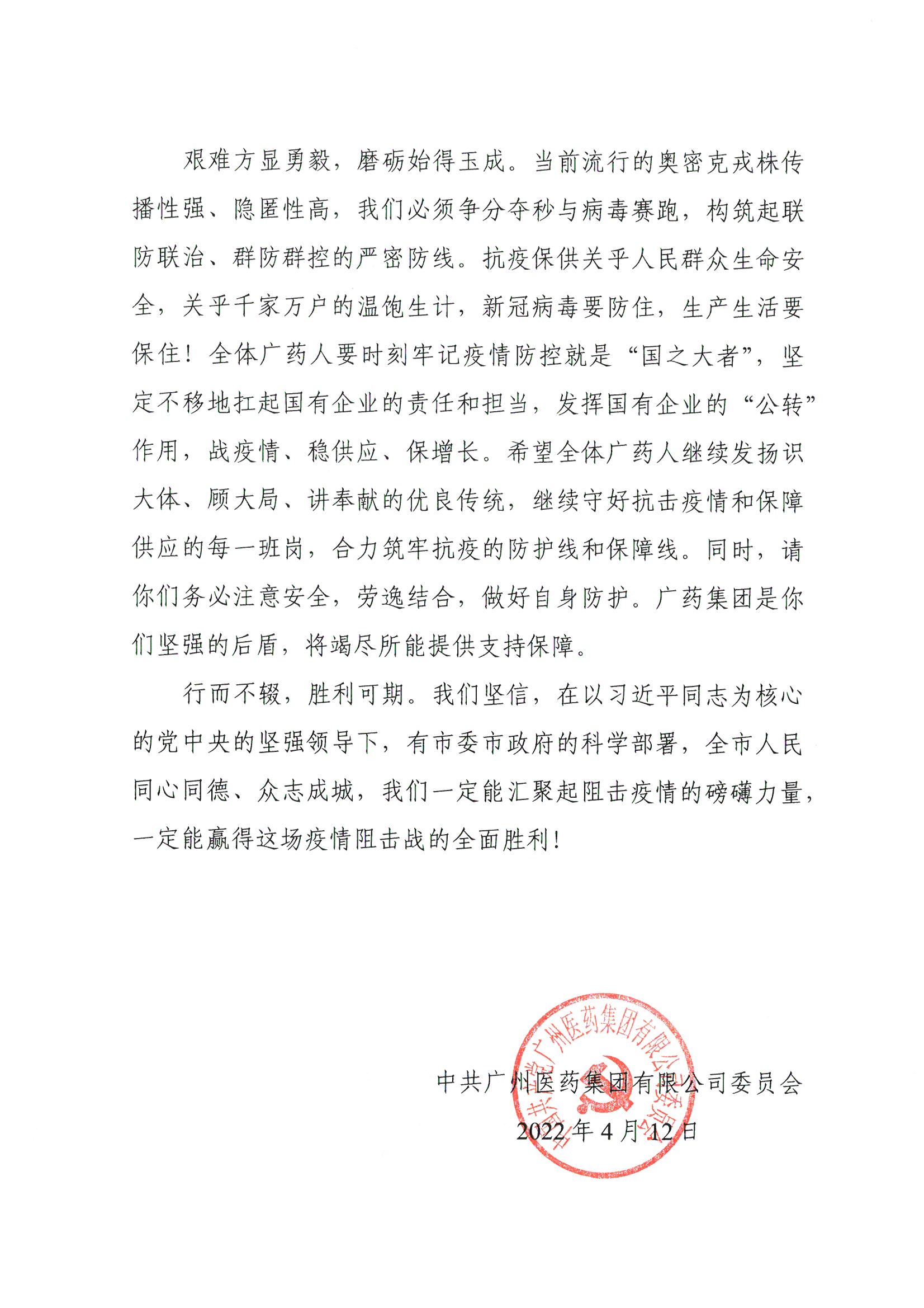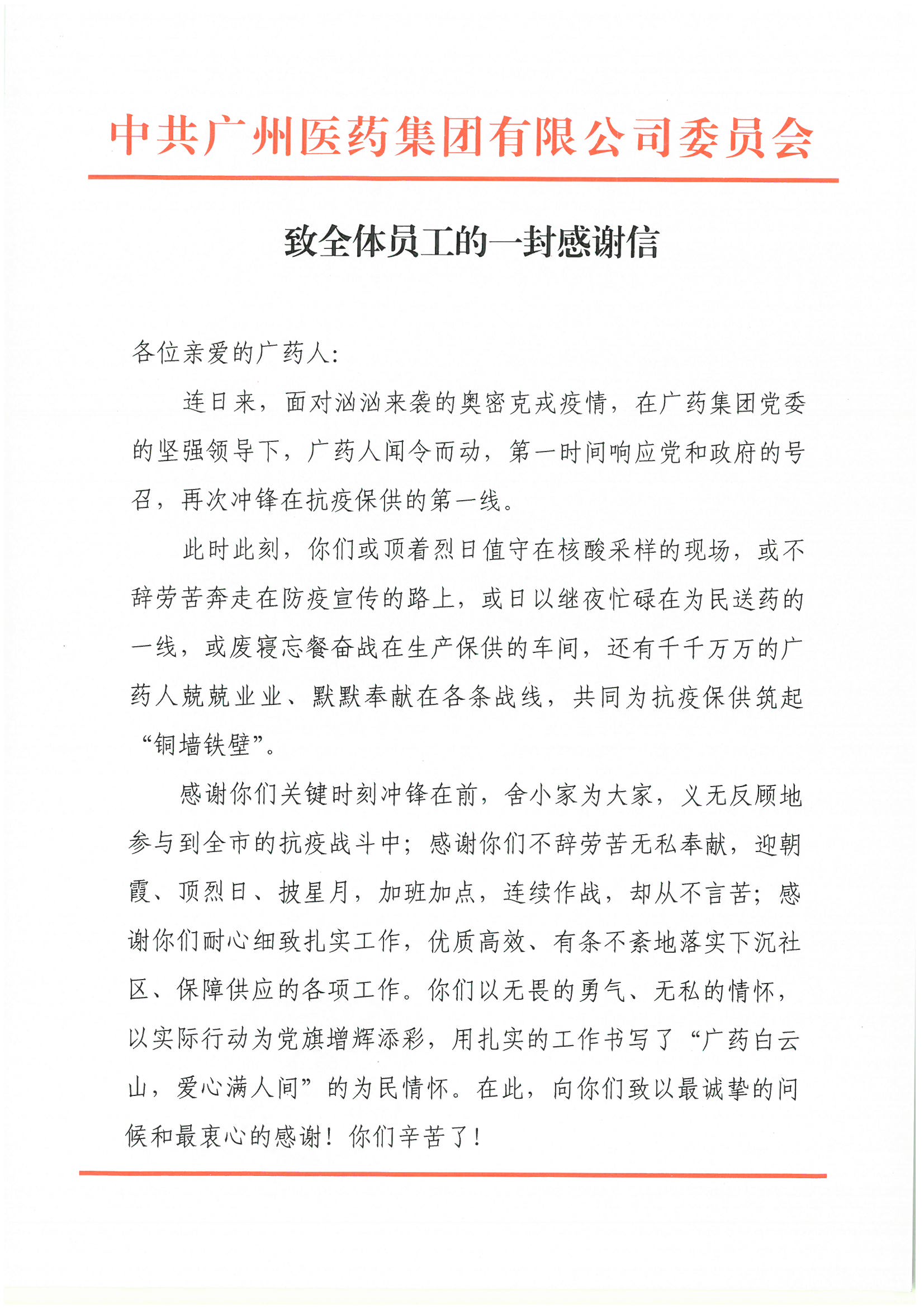 致全体员工的一封感谢信