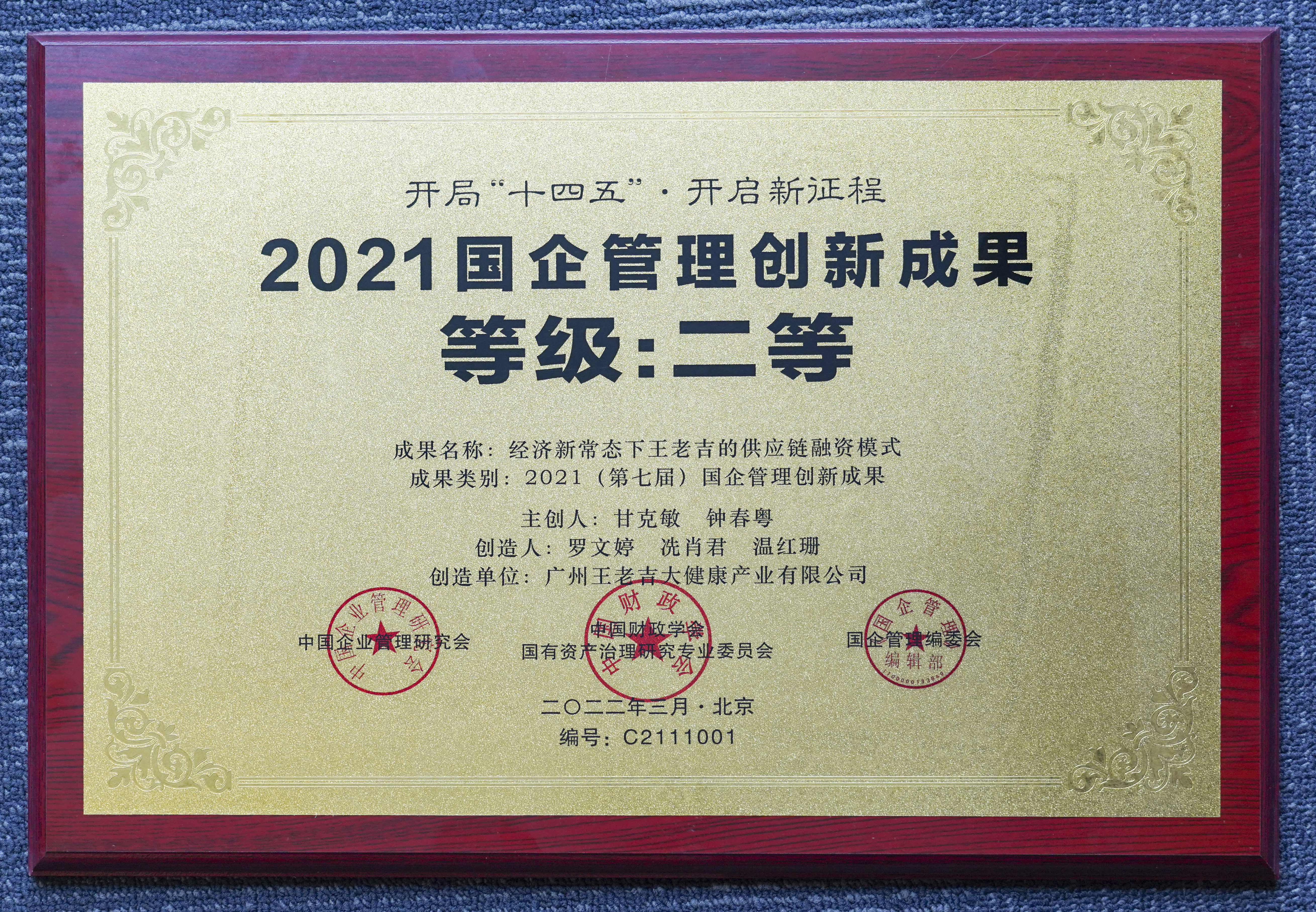 近日,“2021(第七届)国企管理创新成果(案例)”通过线上举行的国企管理智库第一届理事会会议在北京发布。广药集团携旗下企业从众多成果案例中脱颖而出、喜获佳绩。其中,广州王老吉大健康公司的《经济新常态下王老吉的供应链融资模式》获“2021国企管理创新成果第二等级”。