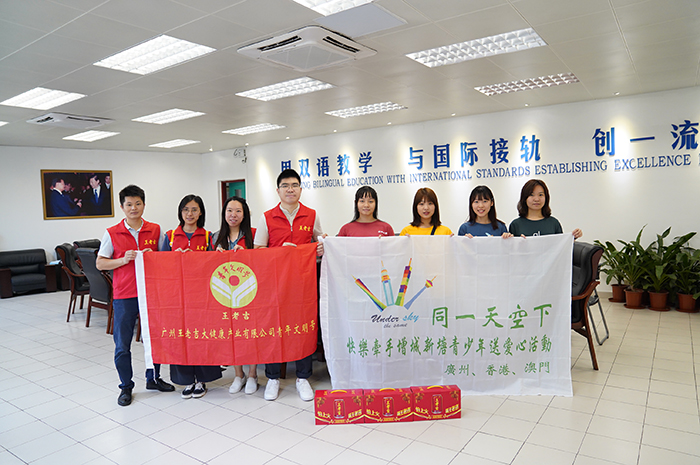 7月18日,由同一天空下希望之家协会主办的“2019同一天空下送爱心活动”,在广州番禺祈福英语实验学校举行开营仪式。活动通过与广州市增城区新塘镇沙埔中学参与活动的师生进行有关课程和学校社团活动建设及发展工作的“学与教”互动,加强澳门劳工子弟等学校与沙埔中学的结谊交流,并以结谊活动的硕果向“爱的传播”支教活动十五周年、澳门回归二十周年、建国七十周年献礼。王老吉大健康团委参与了本次活动,并现场送上一批王老吉凉茶。