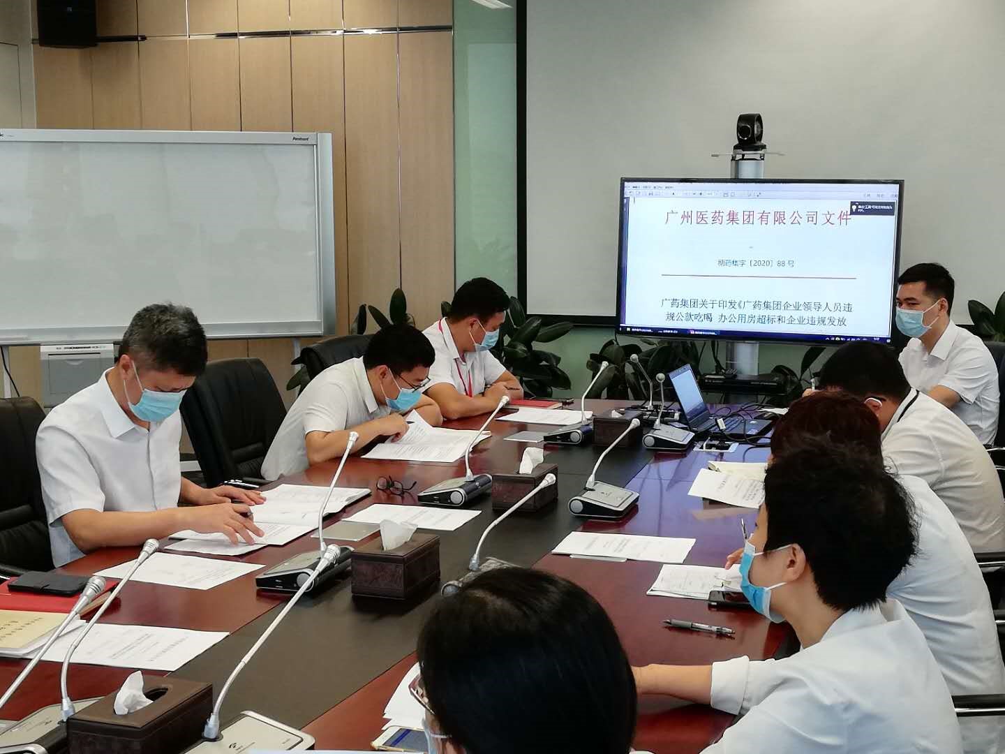 2020年5月19日上午,广州王老吉大健康产业有限公司纪委书记蔡涛同志召集工会、党委办公室、公司办公室、纪委办公室、人力资源部、审计部、财务中心等部门负责人和相关人员召开专项会议,落实广药集团国有企业领导人员违规公款吃喝、办公用房超标和违规发放津问题专项整治工作方案相关工作。
