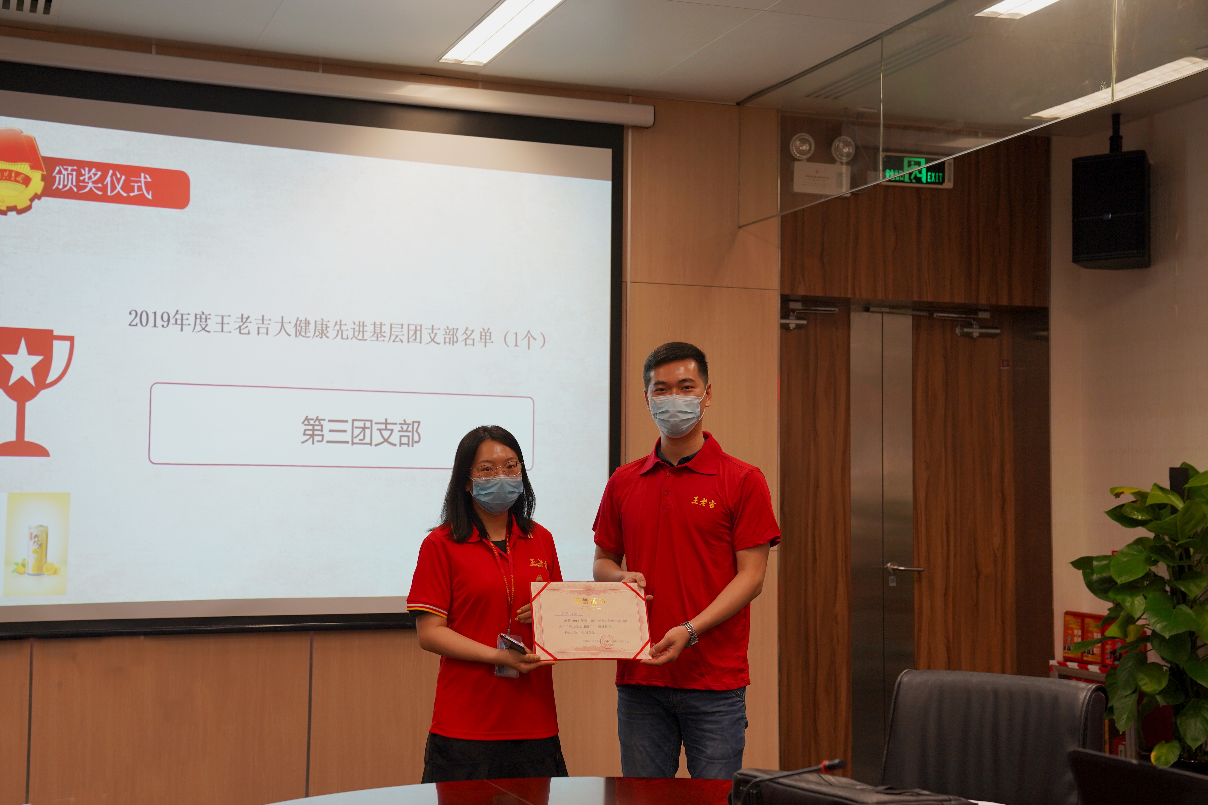 广州王老吉大健康产业有限公司党委办公室副主任胡跃东为先进基层团支部颁奖