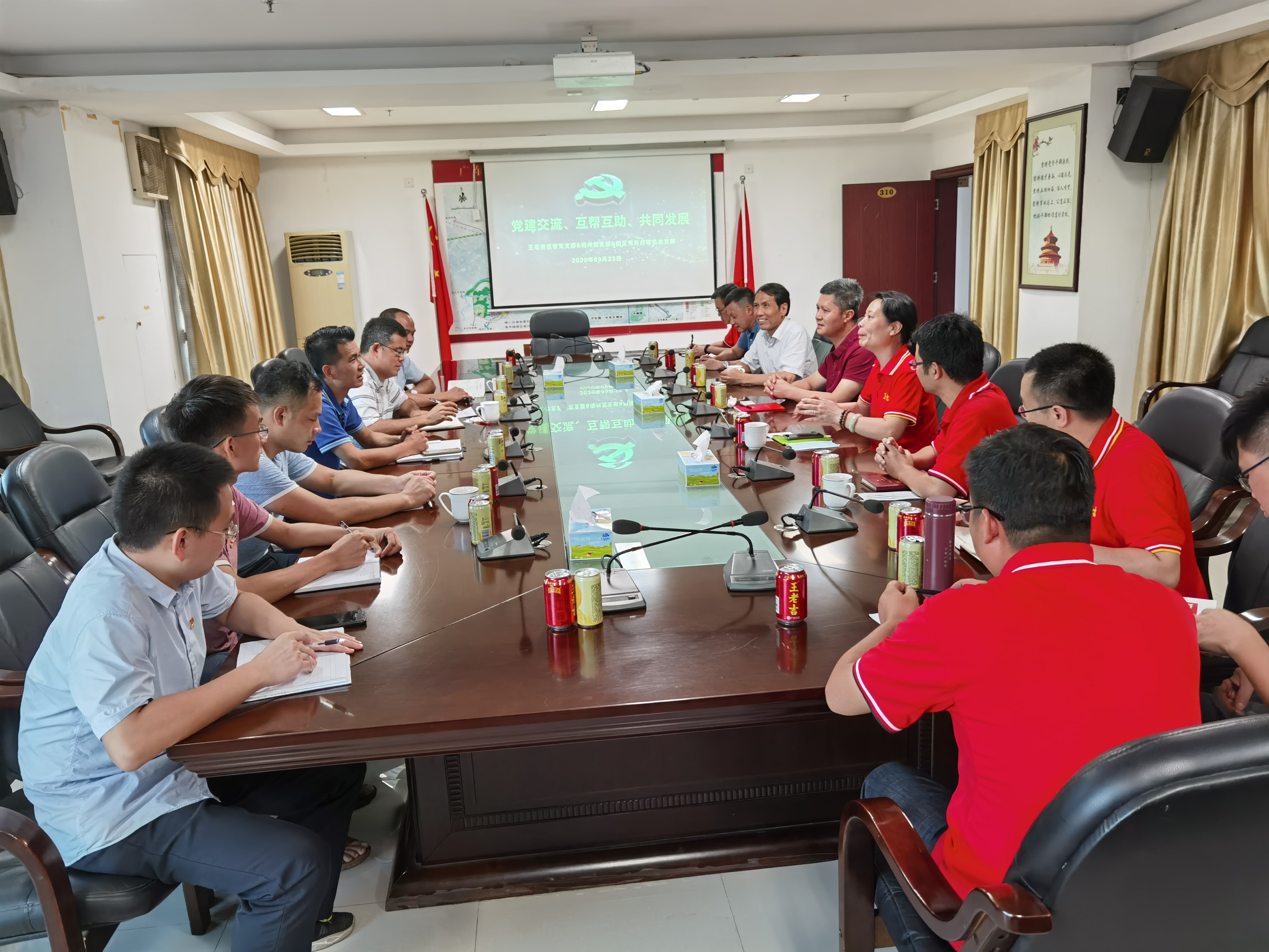9月22日,秋分,梅州地区碧空万里,风和日丽,秋高气爽。直管党支部的基建中心负责的梅州工厂工程项目即将竣工试产、梅州党支部的梅州公司即将接手工厂投产,王老吉大健康纪委书记蔡涛带领直管党支部和梅州党支部与梅州高新产业园等机关支部进行了一次主题为“党建交流、互帮互助、共同发展”的党日活动。本次活动从党建到扶贫产业建设进行了全方面的深入交流,为公司扶贫产业生根发芽开花结果的坚强战斗堡垒奠定了坚实基础。