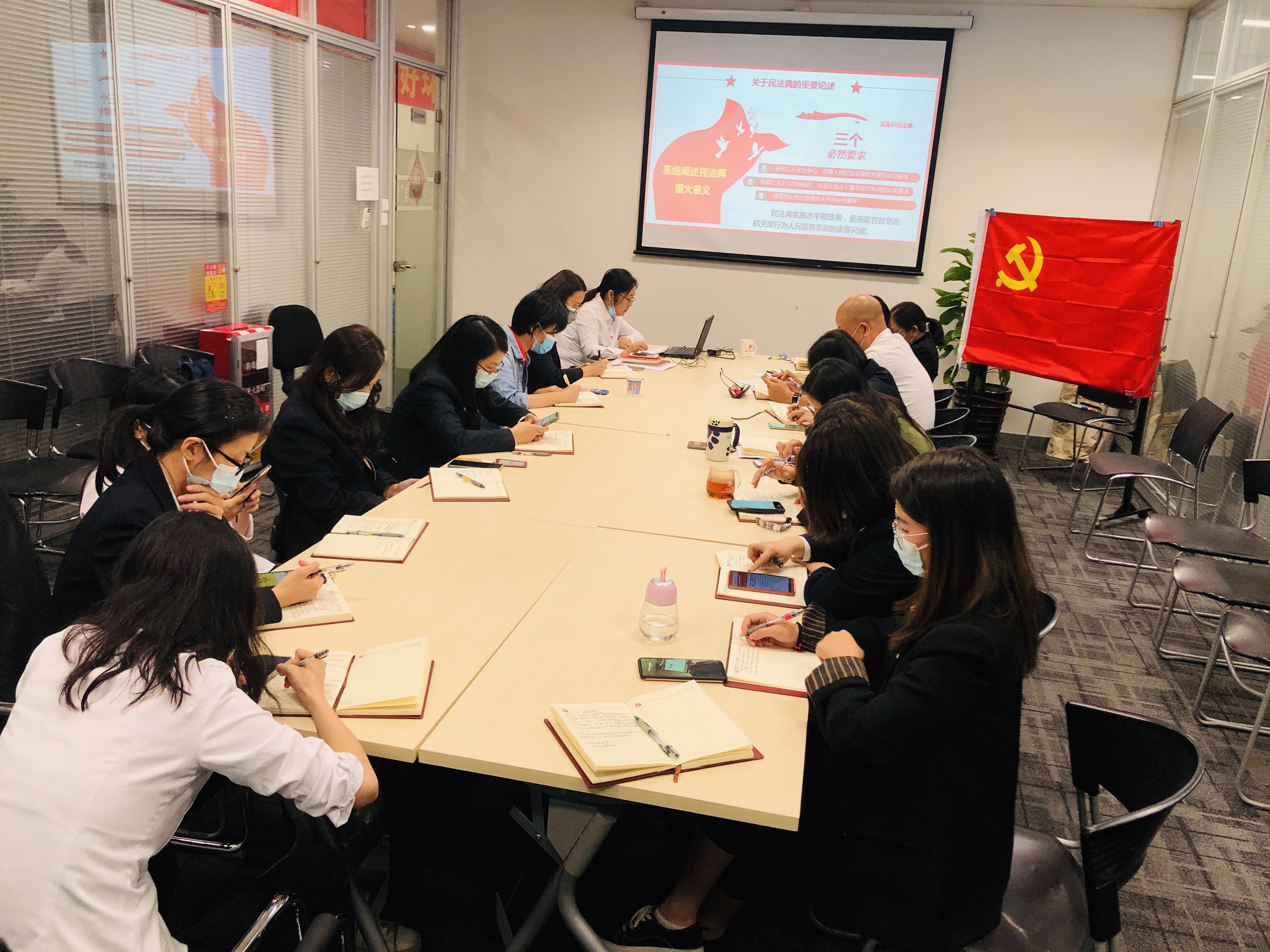 2020年11月10日,财务党支部在公司会议室召开了第四季度党员大会。会上,支部书记甘克敏同志传达了中国共产党第十九届中央委员会第五次全体会议精神,要求全体党员干部深刻认识党的十九届五中全会重大意义,深入学习,抓好全会精神的学习宣传和贯彻落实工作;同时响应市委号召,组织全体党员学习李世全同志新时代优秀共产党员模范精神,弘扬李世全同志的先进事迹和崇高品质,激励党员干部积极担当作为、忠诚履职;接着,支部书记给全体党员上了一堂生动的党课——解读《民法典》,详细讲述了民法典的亮点法条和主要内容。民法典被誉为“社会生活的百科全书”,与大家生活息息相关,书记表示希望大家通过不断学习研究能更深刻认识到民法典颁布的重要意义,也希望大家能学有所得,把学到的知识运用到工作中,生活上,因为只有懂法才会用法,用法才能保障自己的权益。