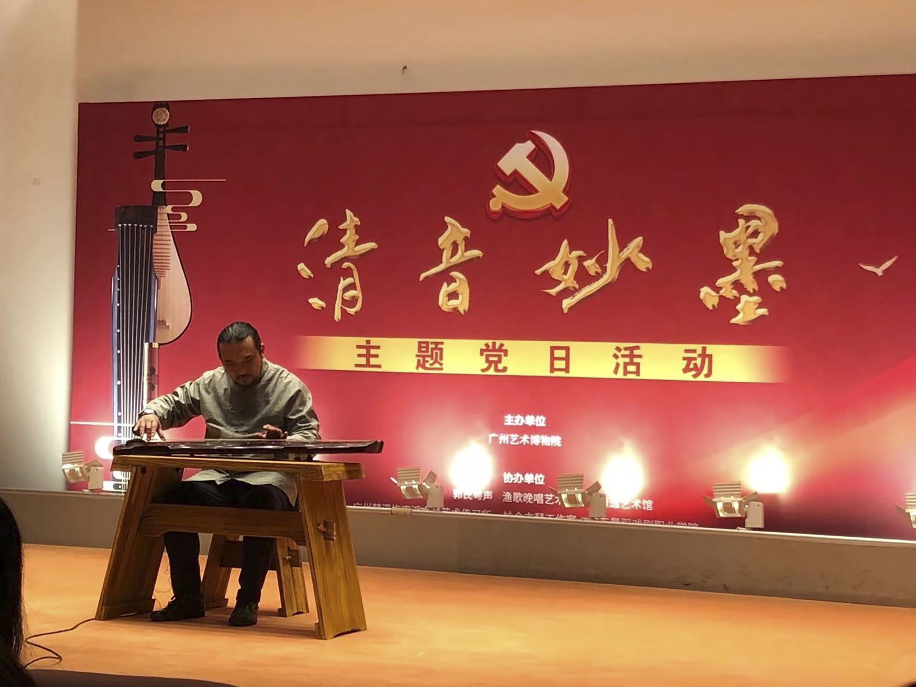 活动中,艺术家们运用古琴、萧、琵琶等不同的民族乐器演奏《平沙落雁》、《左手指月》、《离骚》、《花儿为什么这样红》、《映山红》等曲目,籍着这一支支乐曲来讲述华夏文明、重温红色历史;用音乐倾诉爱乐初心、践行初心使命。艺术家们还给党员们分享了当年在对越还击战场给战士们演奏的往事,并介绍了这些古老民族乐器的传承与发展。党员们还参观了“纪念抗战75周年红色题材佛山剪纸”、“火红岁月之工农兵”、“文心文意千字文”等展馆。