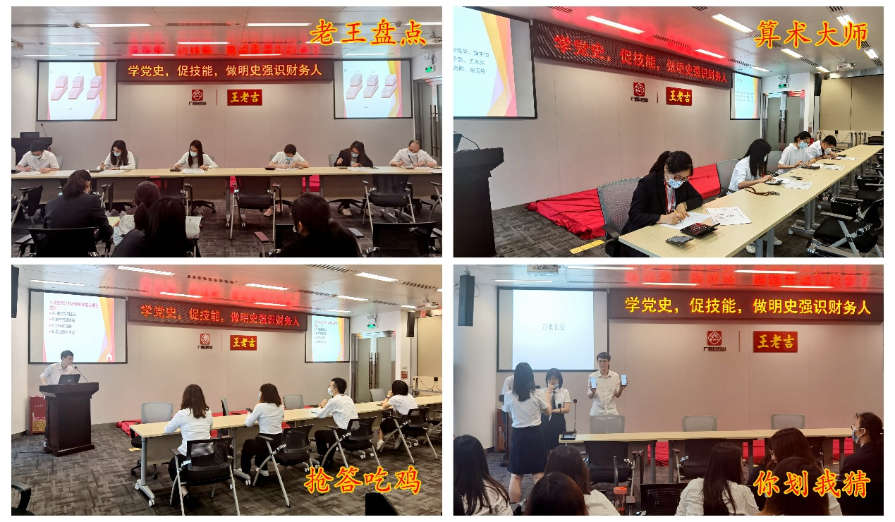 欲知大道,必先为史。为庆祝中国共产党成立100周年,营造全面深入开展党史学习教育的浓厚氛围,充分结合财务自身专业技能的特色,2021年5月17日下午在公司38楼多功能会议室,财务及资金部工会小组、财务党支部第一小组联合组织全体财务人员开展了第三届财务劳动技能大赛。本次大赛由成本管理部承办。比赛现场还邀请王老吉大健康公司工会主席梁全心同志莅临现场指导工作。