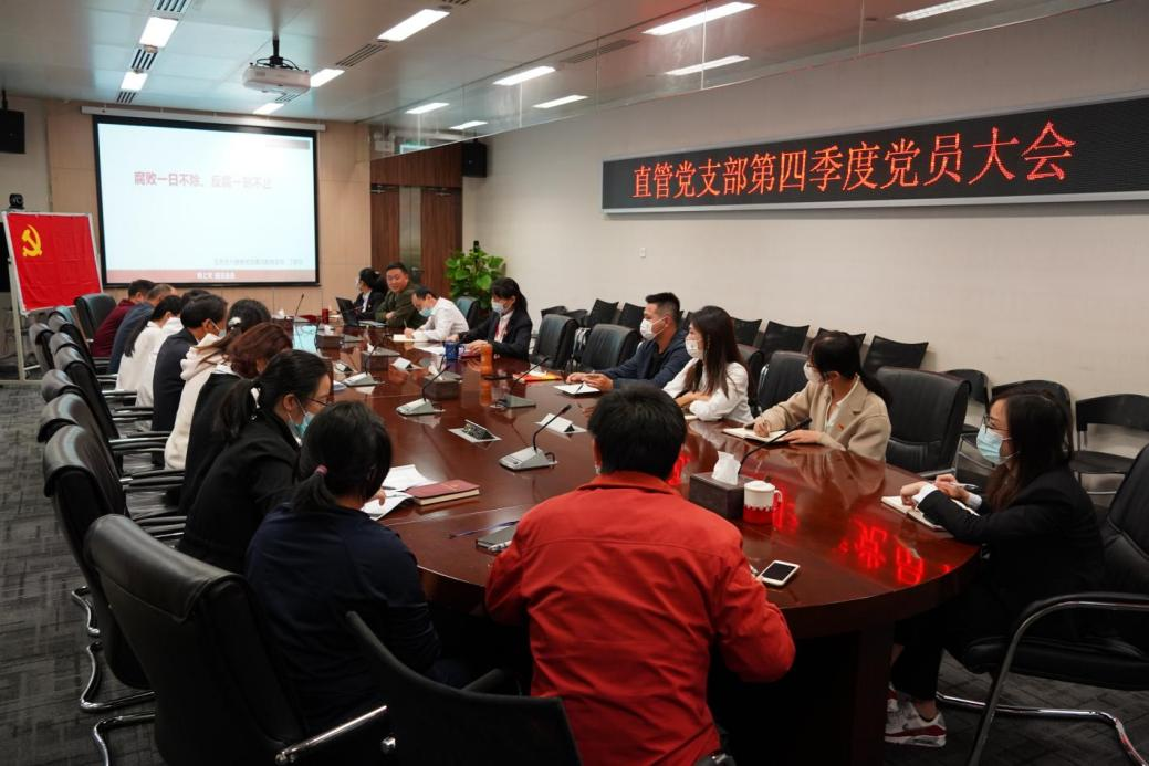 党的十九届六中全会是全面总结党的百年奋斗重大成就和历史经验的重要决议。近日来,直管党支部通过各种途径认真学习贯彻全会精神。11月26日上午,直管党支部组织召开第四季度支部大会,并组织全体党员集中学习全会精神,会议由支部书记刘美琴同志主持。在廉洁教育和安全教育环节,会议现场邀请了投资基建中心全体人员线上线下同步参加了本次培训。