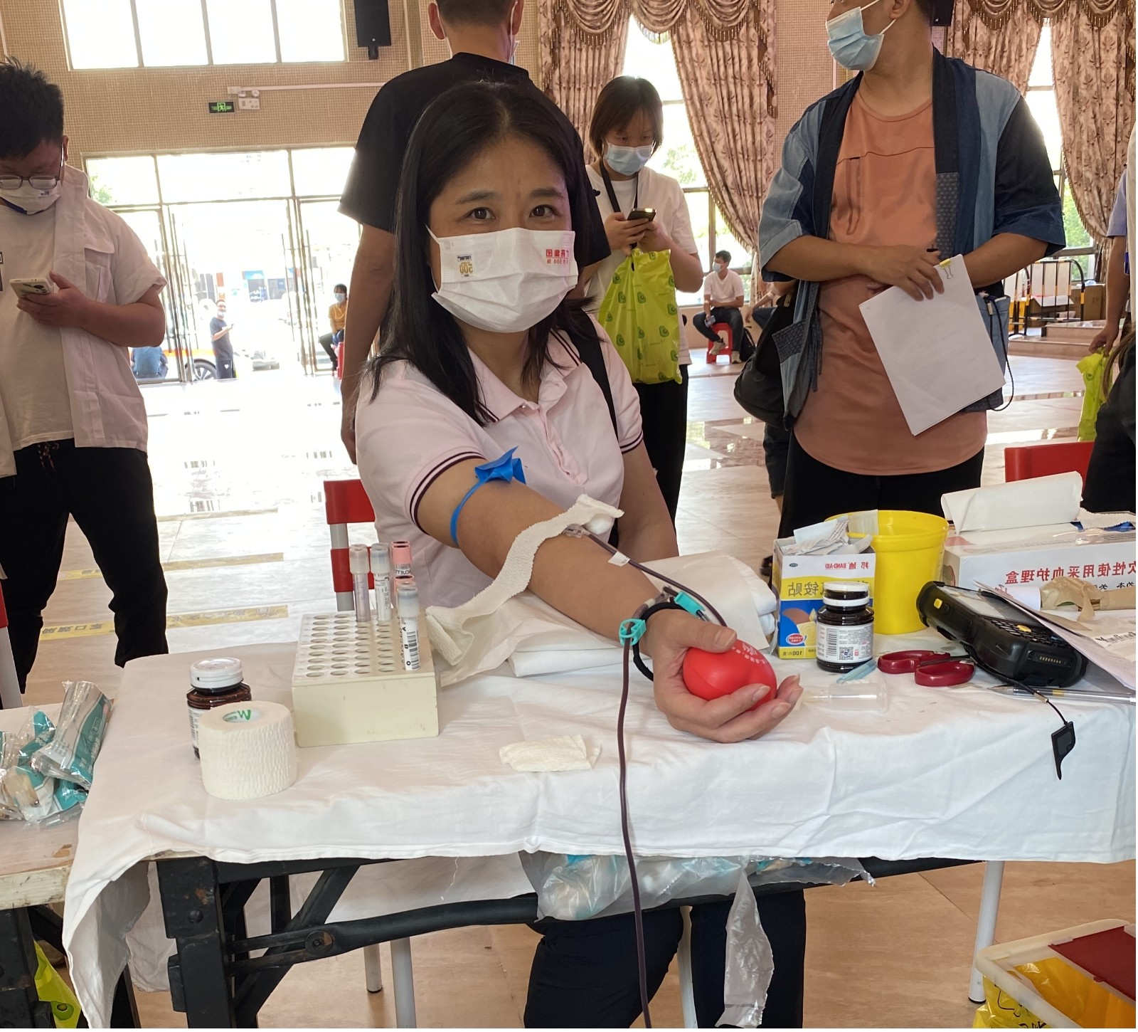 当天上午10点,员工抵达献血活动现场,在医护人员与志愿者的协助下,井然有序地填表、检查身体、验血、等候、献血,一切工作都有条不紊。此次献血活动有近40名员工参加,全血采血量达8000毫升。