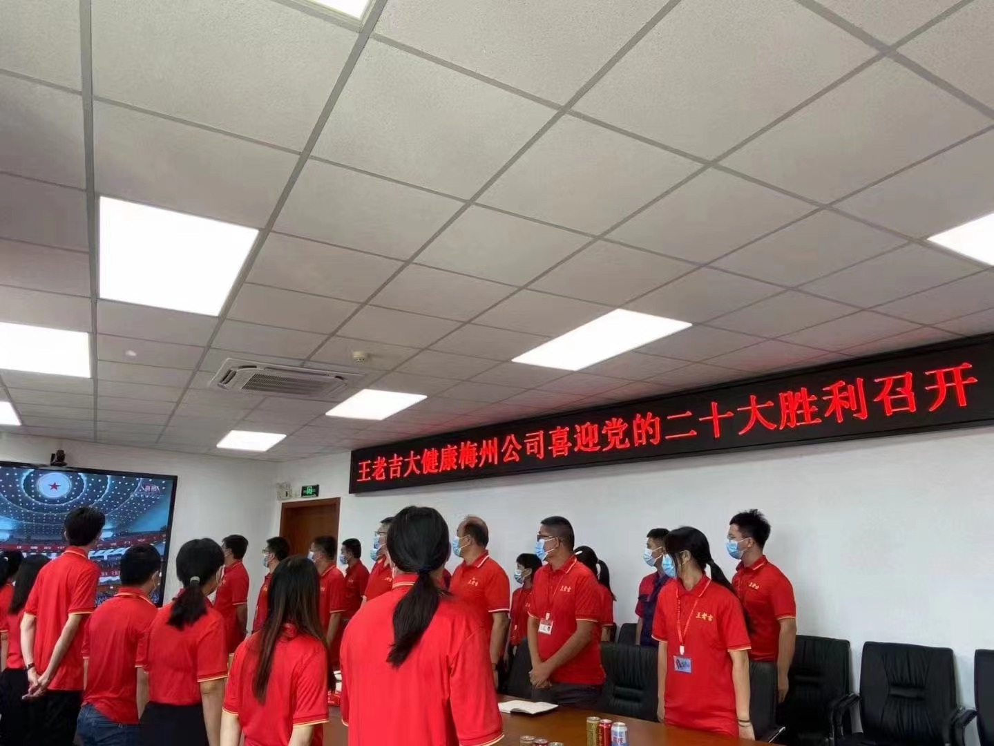 按照广药集团统一部署,王老吉大健康党委号召全国各地近万名党员、职工收听收看党的二十大直播盛况。公司领导班子成员、中高层管理人员在公司本部集中收看;雅安、梅州党支部组织全体职工在子公司集中收听收看;分散在全国各地的党员、职工通过广播、电视、网络等多种方式收听收看党的二十大开幕会直播实况。