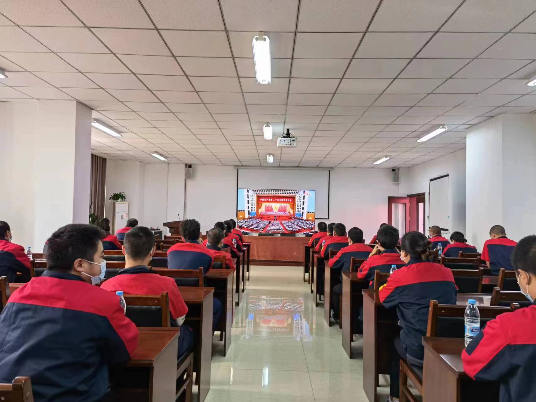 公司领导班子成员、中高层管理人员在公司本部集中收听收看党的二十大开幕会直播盛况