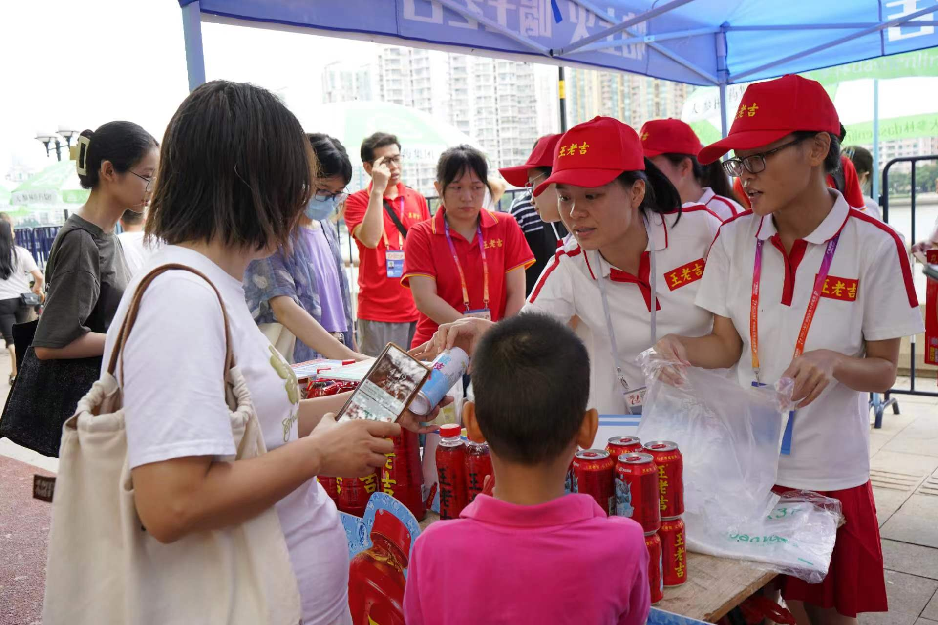 时隔三年,无论是选手还是市民,都热情期待龙舟赛事的回归,王老吉独特而喜庆的红色,也将现场氛围拉满。当前正值“龙舟水”集中期,天气高温高湿,王老吉为消暑降温工作给予支持,带来了王老吉等系列饮料,帮助参赛选手、市民消暑降温。现场还有不少路过的市民主动与王老吉打卡拍照,一同庆祝这场久违的盛况。