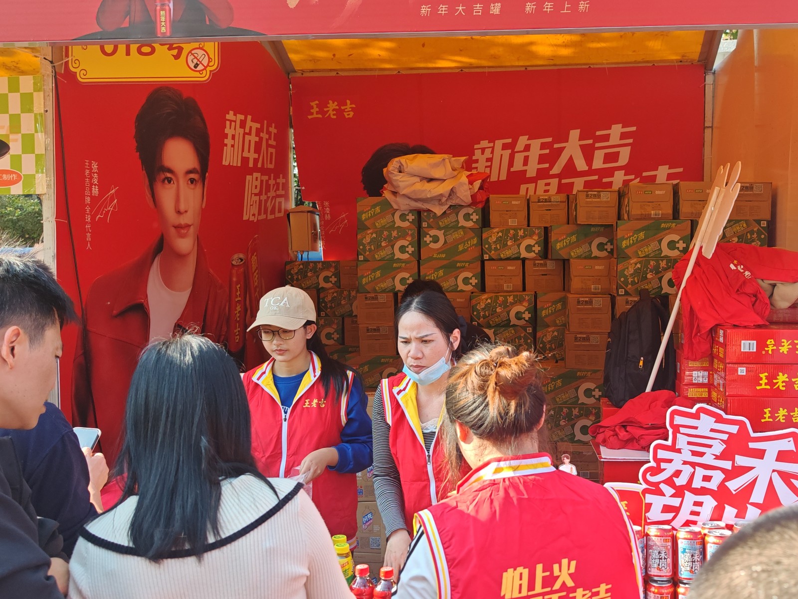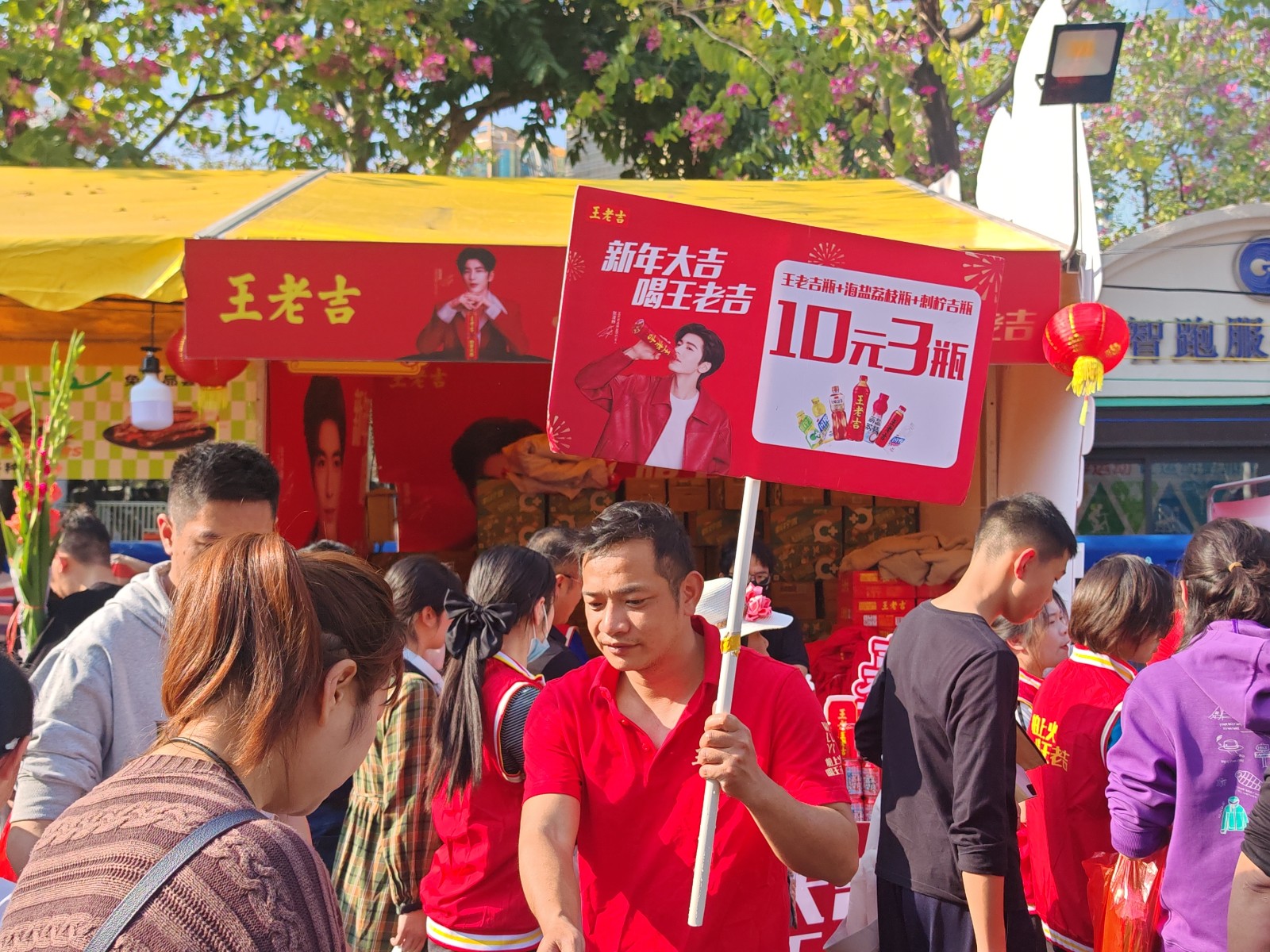 节日期间,各大花市人气爆棚,市民采购热情拉满!王老吉、荔小吉、刺柠吉C+圈粉无数,深受大家喜爱,销量一路狂飙、供不应求,现场紧急补货几百箱,全力守住供应线!