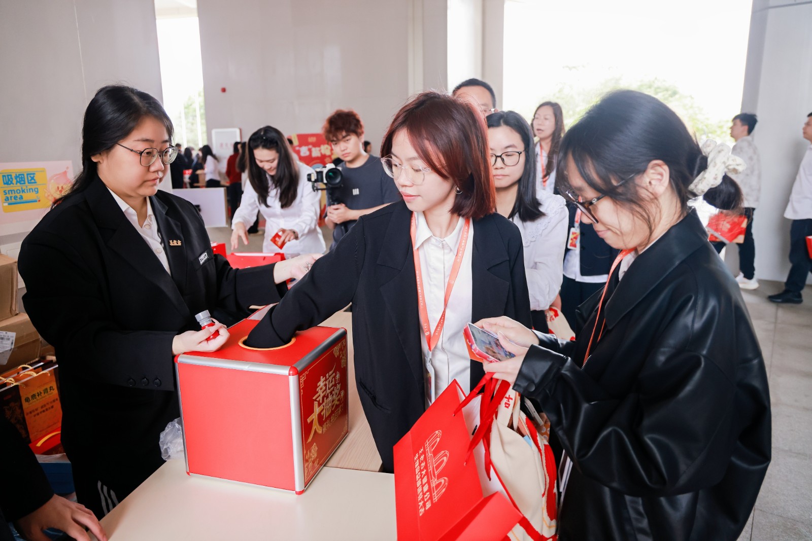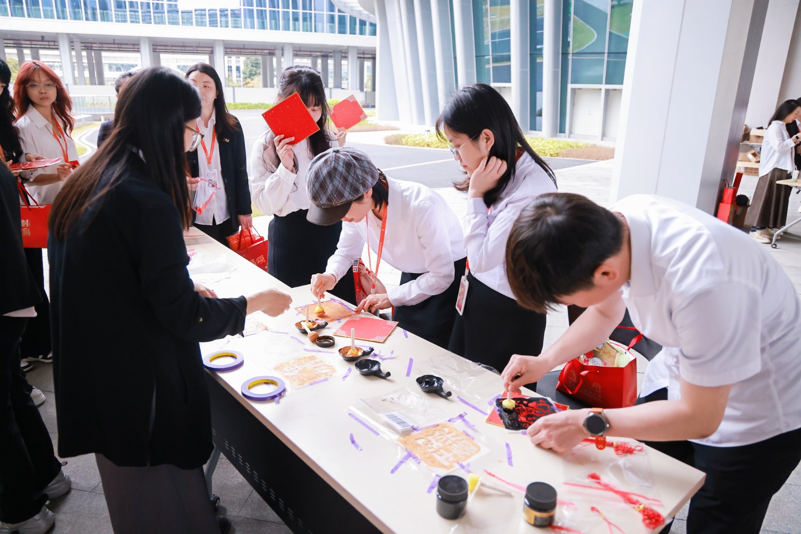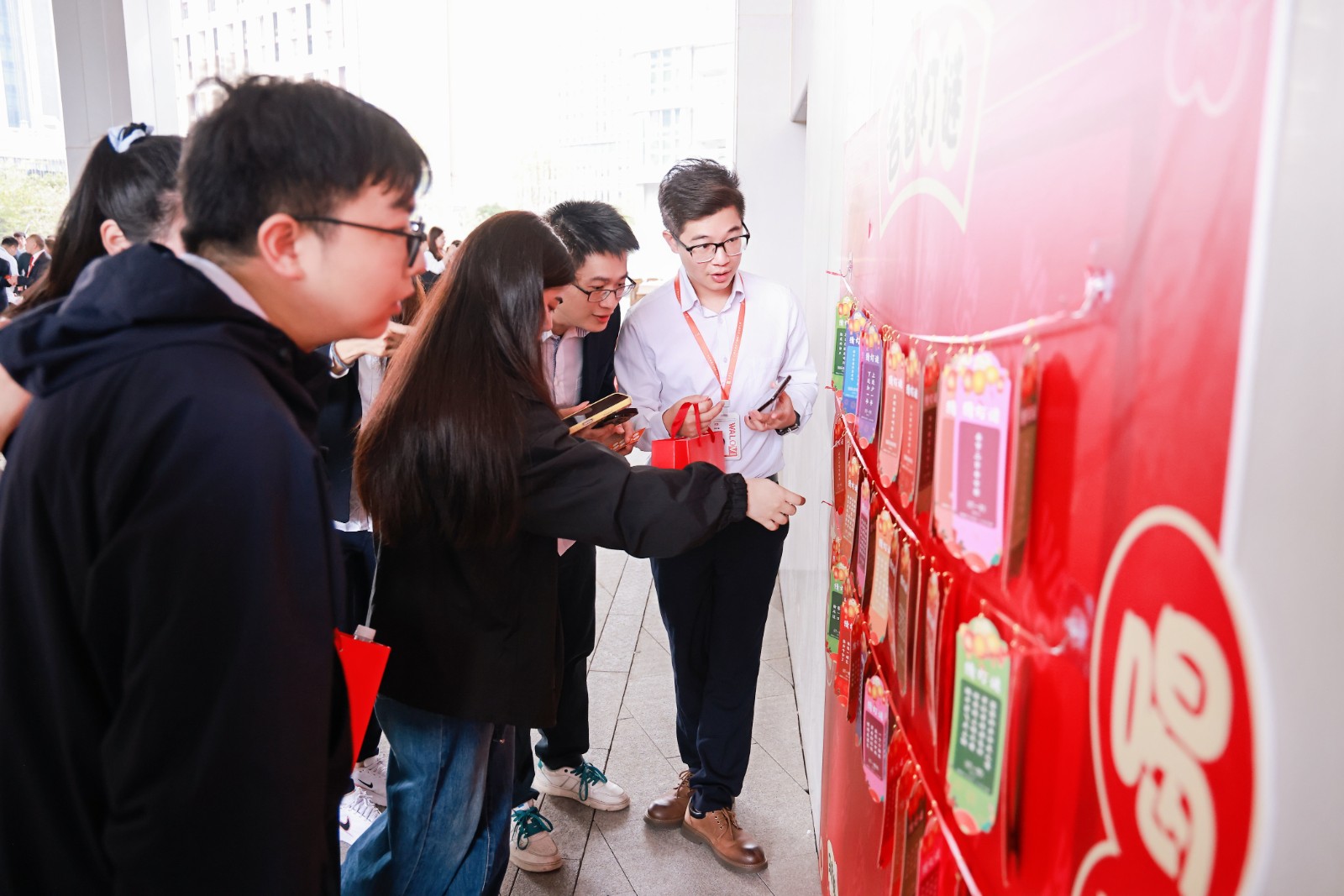 最具仪式感的当属“吉”愿祈福区。集满8枚印章的同事手持定制祈福卡,蘸上金墨亲手拓印出专属的新年祝福,将满满的“吉”运定格,把温暖的心意带回家。