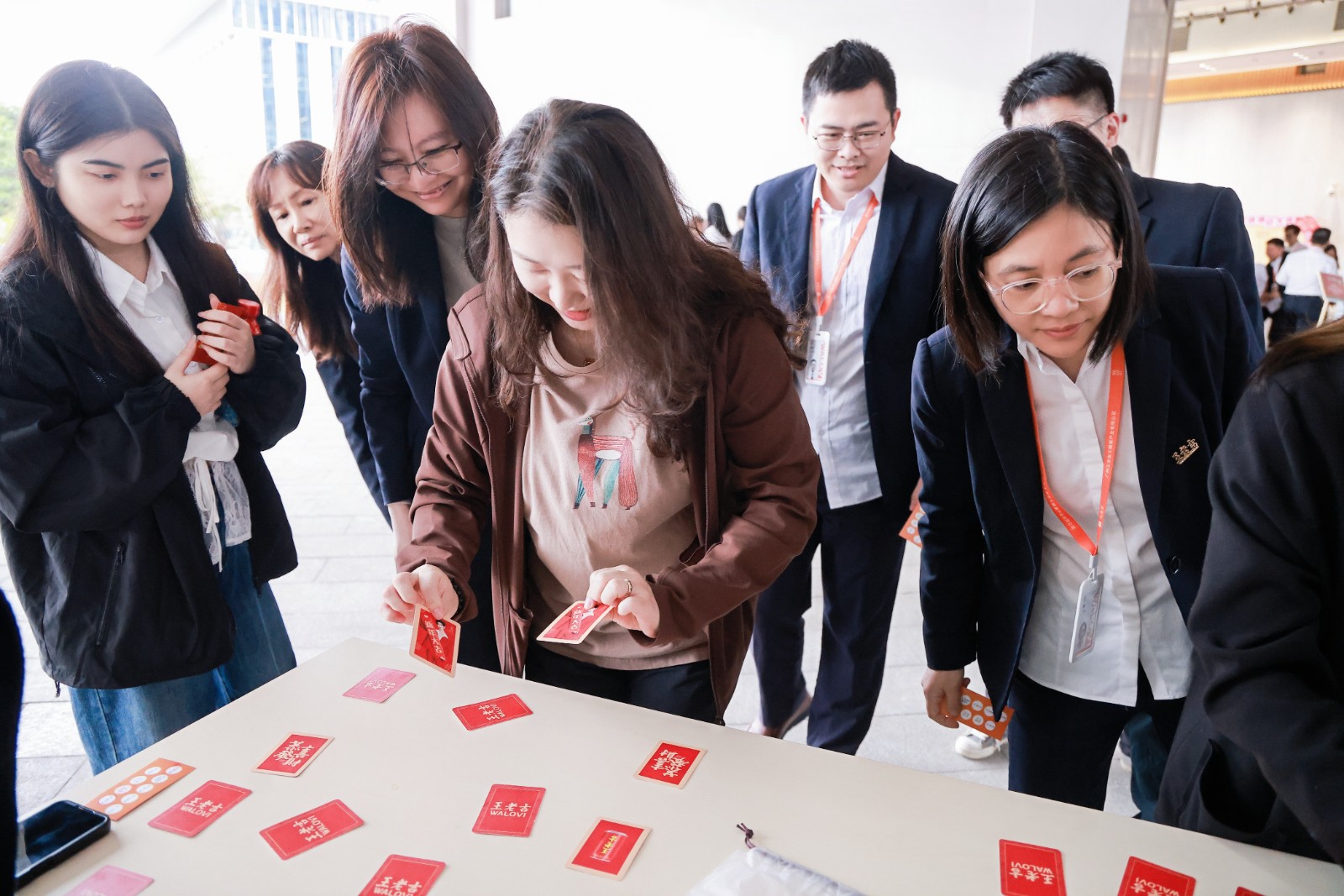 一大早,一楼大堂及室外空地便装扮一新,处处洋溢着新春的活力。同事们手持随新春礼包发放的“吉运游园卡”,开启了一场集章闯关的欢乐之旅。