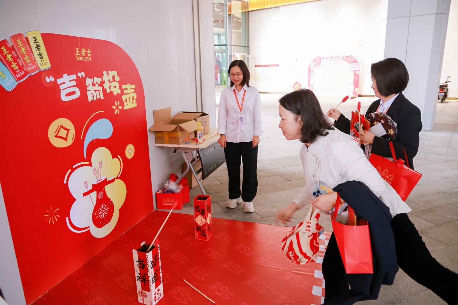 团队协作类的“吉”力拼图和“吉”速过三关,让同事们在配合中拉近距离;“吉”运滚滚来摊位前,一罐罐王老吉红罐滚出新年好运,参与即得章、中奖即领礼的设置,让每个人都能收获惊喜。