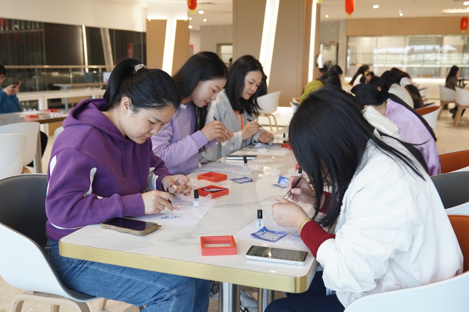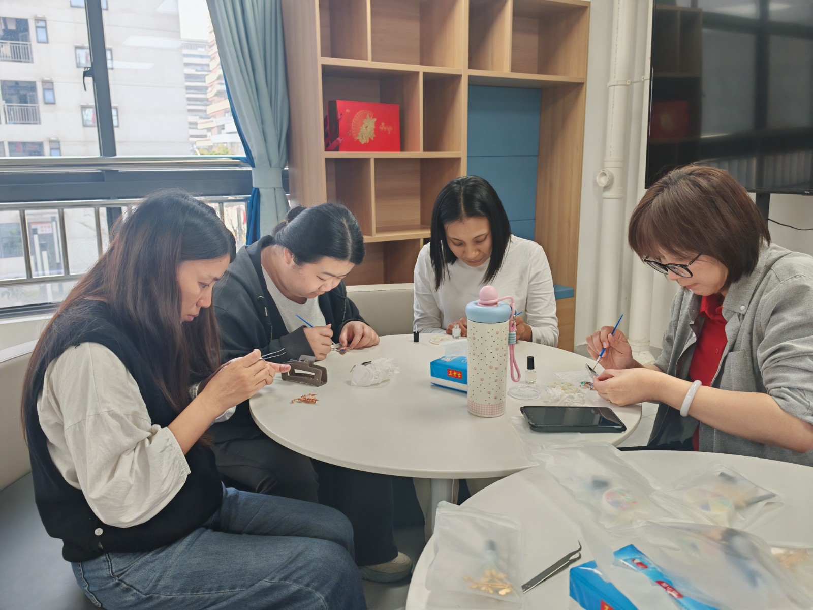 螺钿轻拼、慢慢粘贴,每一次动手都满是专注,零散的贝壳素材渐渐化作一枚枚独一无二的胸针,成就感与喜悦感满溢心间。大家互相展示作品,分享创作中的小趣事,不仅感受着非遗文化的隽永魅力,更让同事间的情谊在轻松的互动中愈发浓厚。