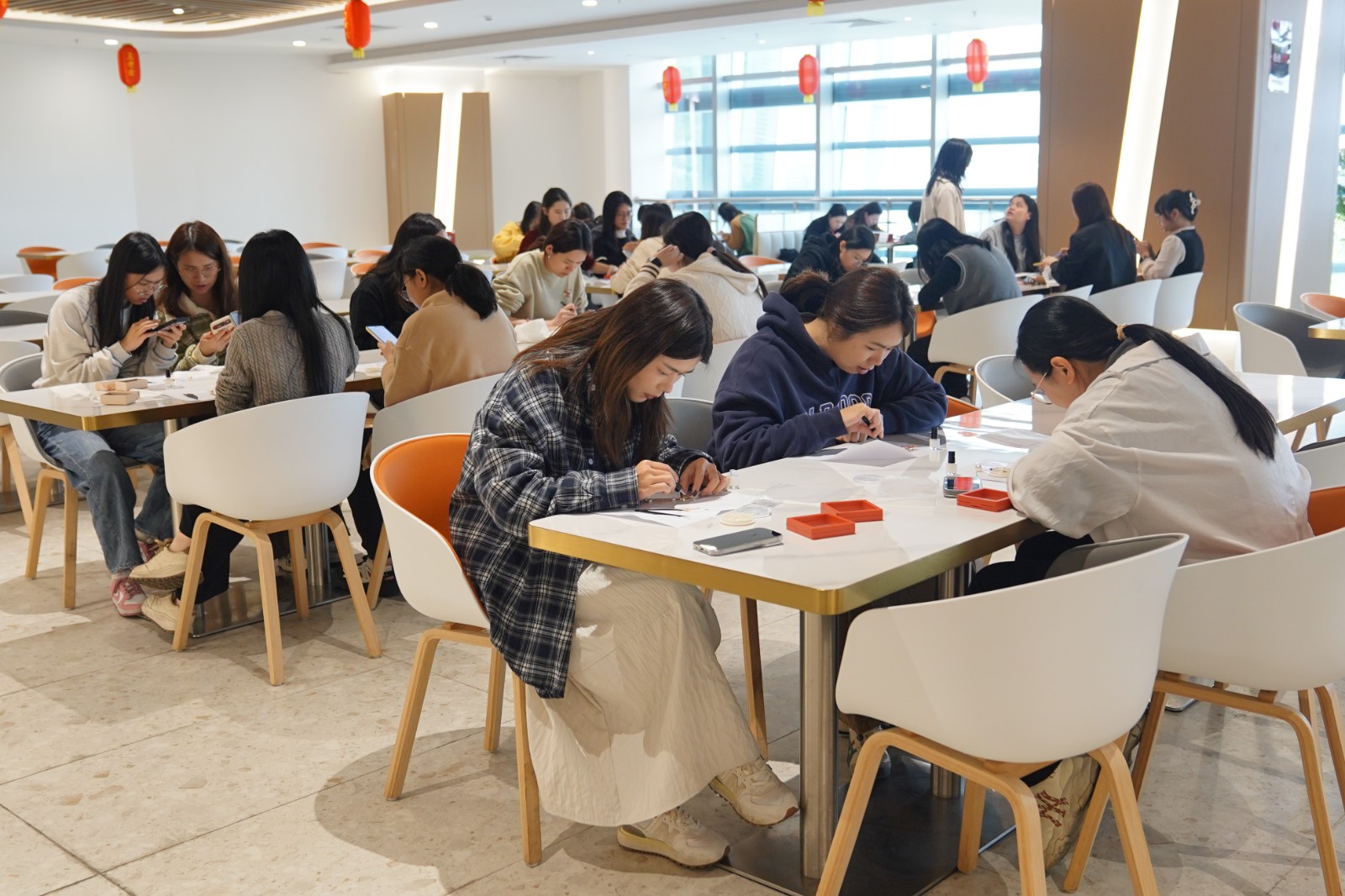 下午,员工餐厅悄然变身,化作雅致温馨的手作空间。螺钿胸针体验活动在此温馨启幕,女职工们带着满心期待齐聚一堂,共同解锁非遗技艺的独特魅力。