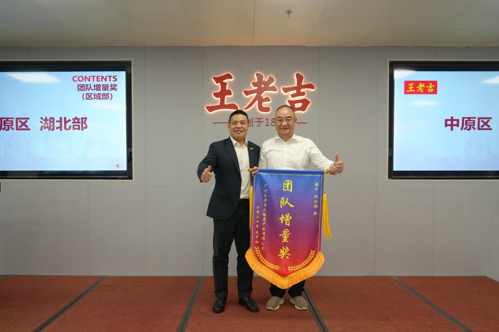 春龙抬首,奋楫扬帆。3月20日,王老吉大健康2026年春节档销售激励颁奖会在公司总部顺利召开。公司党委书记、董事长、总经理方达锋携领导班子出席会议,现场为在春节档营销工作中表现突出的销售团队及先进办事处经理、工作组组长颁发荣誉奖项,予以表彰,充分肯定全体营销人员在春节档攻坚克难、奋勇争先的优异成绩;同时会议紧扣“十五五”发展要求,明确三大核心攻坚方向,为全年营销工作定调领航。