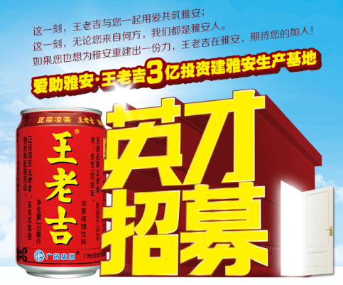 王老吉启动“爱助雅安•王老吉英才招募”活动