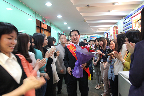 2014年4月30日下午,王老吉大健康公司在总部15楼举行了简短热烈的庆祝仪式,热烈欢迎“全国五一劳动奖章”获得者陈矛董事长载誉归来。公司党委书记陈伟平主持,总经理徐文流等公司领导班子、中层干部、员工代表出席了欢迎仪式。