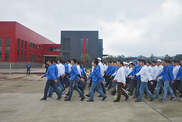 11月12日上午,安保组罗平作为军训总指挥,带领着生产部、质量部140个员工进行军事训练。在随机分配的10个队伍中,曾经是军人的同事当仁不让的担任大家的军训教官,每一个队伍由一个军训教官带领特训。训练的科目包括“原地转法、立正稍息、齐步走跑”等。军训是磨练人的意志力,强化纪律性的良好武器。大家在军训中提升了团队凝聚力、命令执行力和纪律意识
