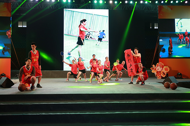 除了节目,年会导演组更安排了“烧脑“的趣味活动,你试过一边做运动一边念绕口令吗?你试过12个人一起在舞台上跳大绳吗?看着体育馆一边码的整整齐齐的吉祥物:猴公仔们,每个参与比赛的员工都卯足了劲儿为自己的方阵夺分!最后,获得第一名的黄色方阵以优异的表现报得大猴归,其余方阵也收获了自己的小猴们,欣喜之情写在了每个人的脸上。