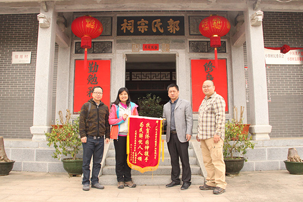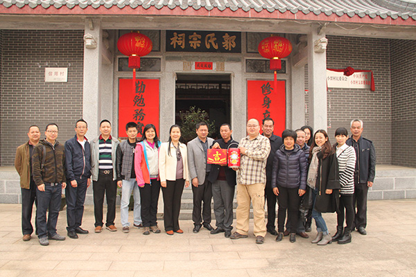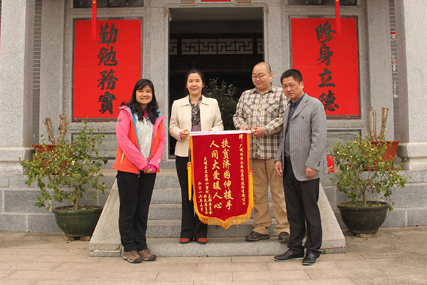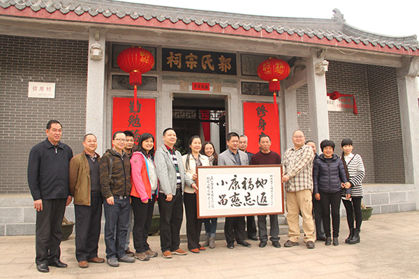 广药集团工会主席黄志恩代表集团扶贫工作组向小留村赠送了题为“小康福地,留恋忘返”的书法牌匾