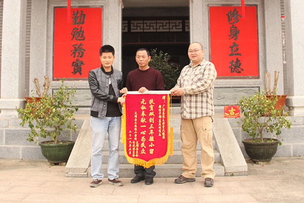 最后,小留村村委会分别向广药集团、王老吉大健康和驻村干部莫益欢赠送了感谢牌匾、锦旗。黄志恩主席也代表集团扶贫工作组向小留村赠送了题为“小康福地,留恋忘返”的书法牌匾。