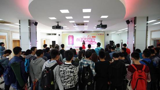 王老吉“吉时行动小分队”热心地向同学们介绍爱心招募活动的相关信息