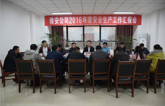 本次会议由雅安公司对2016年度安全生产及综治维稳工作所取得的成绩、存在的不足进行总结汇报。随后,广州总部考核工作组对雅安公司安全生产管理资料进行查阅,对厂区安全管理工作现场进行检查,在雅安公司自评的基础上对考核标准逐项评分。