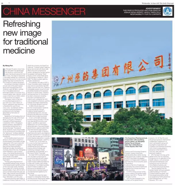 6月14日《每日电讯报》广药集团、王老吉作为广州企业标杆案例进行分享