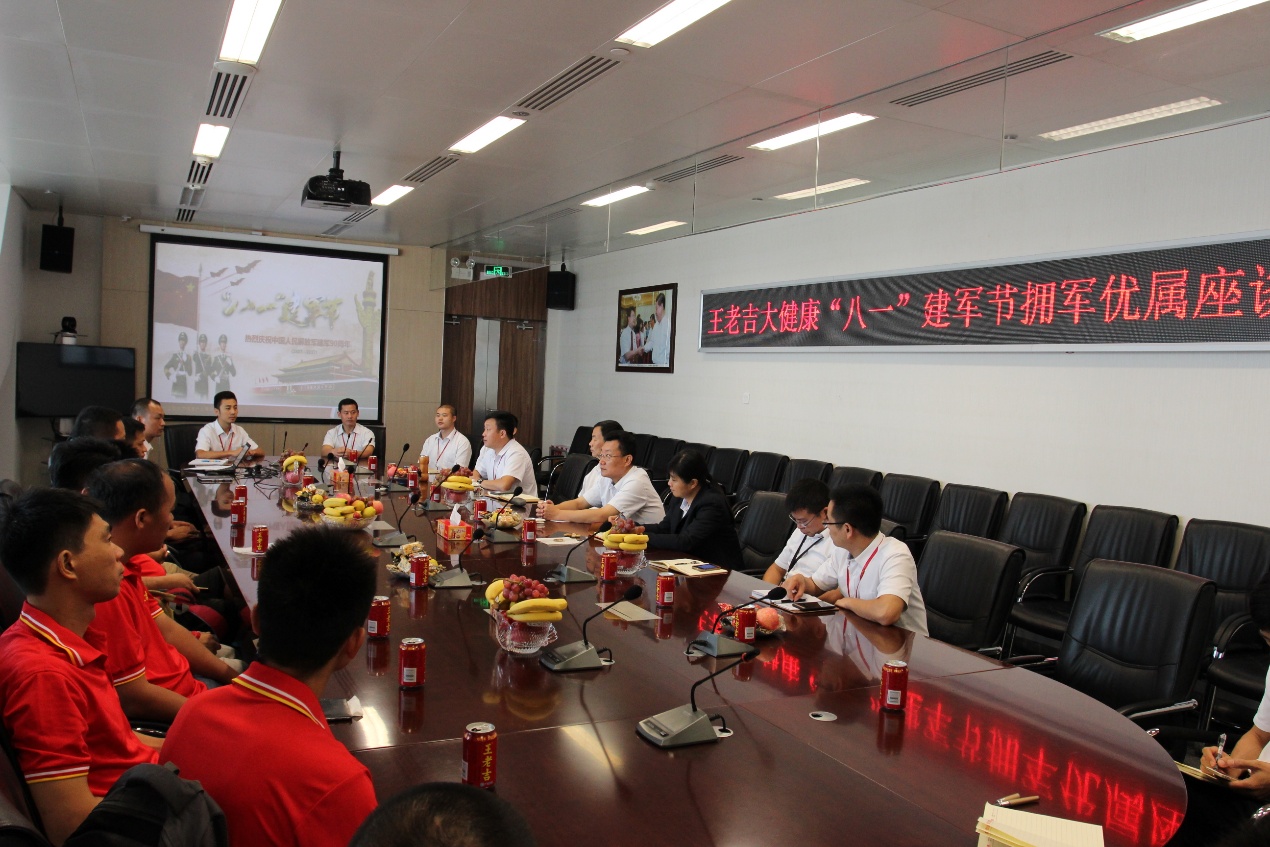 今年是中国人民解放军建军90周年,为庆祝“八一”建军节,缅怀老一辈革命家及中国人民解放军的缔造者,进一步发扬广药集团拥军优属的光荣传统。8月1日上午,公司安全保卫部以“不忘初心,继续前行,在人生的第二战场建功立业”为主题,在公司总部组织召开了拥军优属座谈会。公司党委副书记、纪委书记米琪、公司副总经理巫辉南、工会主席梁全心以及来自销售、生产等岗位的复转军人代表参加座谈会,本次座谈会由安全保卫部部长、纪检监察室主任丁群生主持。会上,米书记转达了陈矛书记、徐文流董事长、翁少全总经理对公司385名复转军人的亲切问候,感谢复转军人曾经为保家卫国所作的贡献,祝愿大家节日快乐。