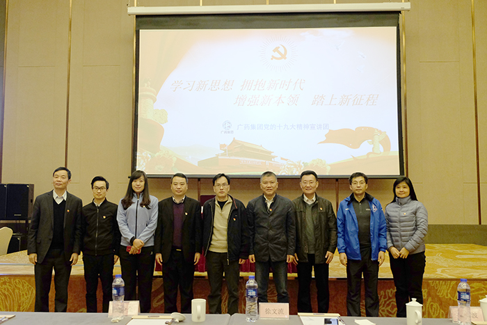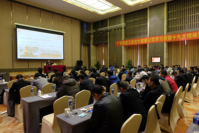 为学习、贯彻落实好党的十九大精神,1月10日上午,大健康公司党委组织召开广药集团王老吉大健康公司学习贯彻十九大精神宣讲大会。广药集团十九大宣讲团成员、特级内训师、原何济公党委书记邹建华同志莅临指导,以“学习新思想拥抱新时代 增强新本领 踏上新征程”为题,以习近平新时代中国特色社会主义思想指引企业改革发展实践为主线,上了一堂深入而又生动的贯彻学习党的十九大精神的主题党课。公司党政班子成员、全体中管人员、入党积极分子100余人参加了大会。