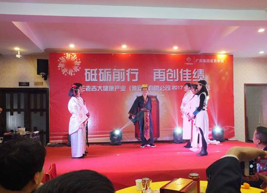 至此,2017年王老吉雅安公司年会胜利闭幕,公司领导走上舞台,共同举杯,展望雅安公司的美好未来,激励全体员工砥砺前行再创佳绩,祝福每位员工及其家人新年快乐,万事如意,狗年大吉!