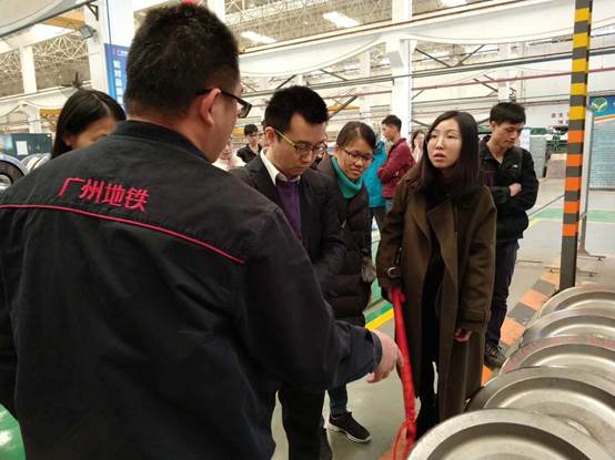团干队伍一行人员首先对鱼珠车辆段轮对生产线的工作现场进行参观学习。鱼珠车辆段工班长刘健向随行人员介绍了广州地铁的最美南粤工匠何允烘师傅先进事迹,以及鱼珠车辆段模范班组敢于亮剑、勇于担当、肩负使命、做地铁的先锋将士的精神,讲解了立式车床对车轮的精修工艺、轮对的压装和轮对的生产过程。随行的团干和青年文明号成员都深受鼓舞,热血沸腾。