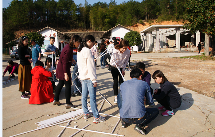 其间,为加强团队建设,拓展老师将我们分成三组,利用PVC管共同搭建过山车模型。通过这个小游戏,旨在增强团队的沟通、交流、合作和信任,培育团队意识和集体荣誉感。