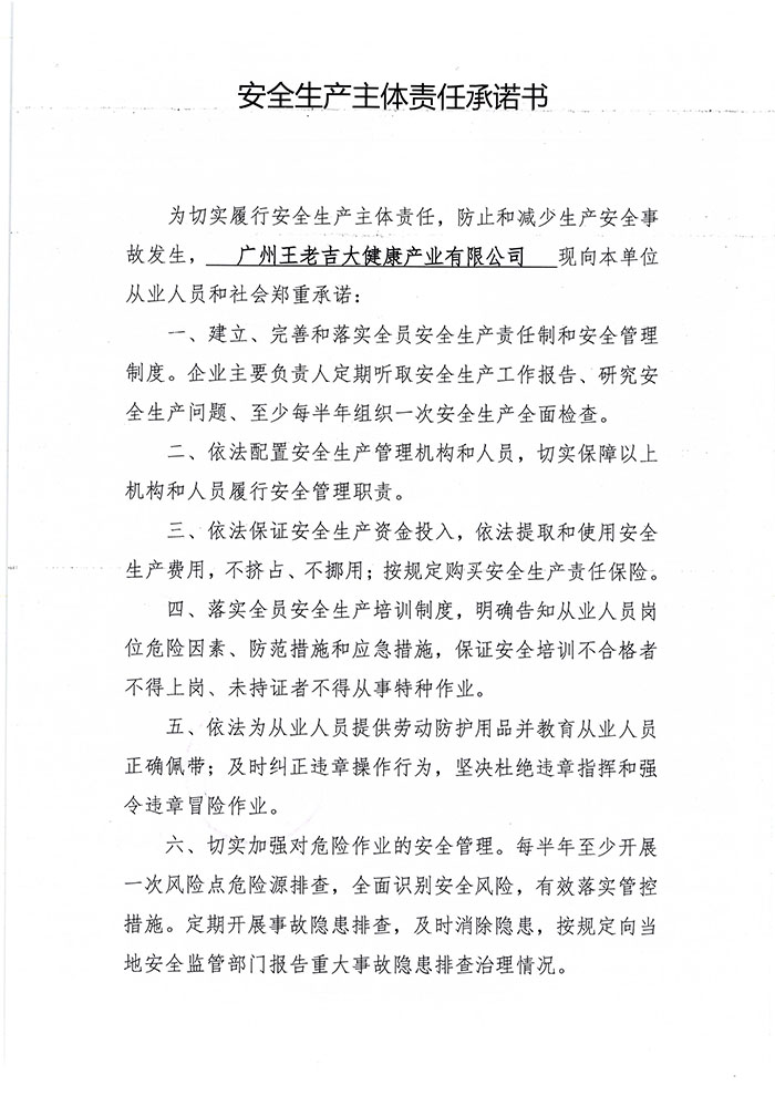 安全生产主体责任承诺书