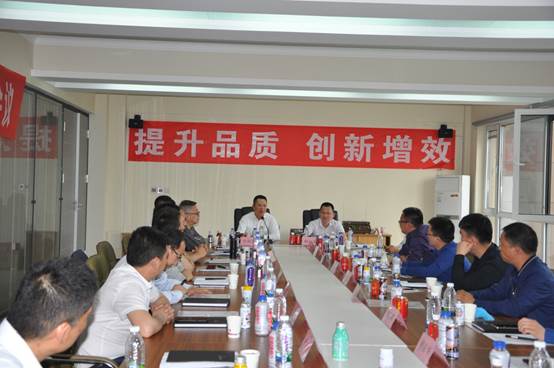 梁耀东总监及区域主管陈孝全对加工厂仓储管理存在的一些瑕疵进行沟通,罐装生产部樊青松经理阐述了加工厂手机使用管理方案,让大家认识到手机管理的重要性,罐装一区区域主任刘选高介绍了罐装一区现场管理情况。