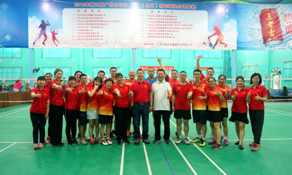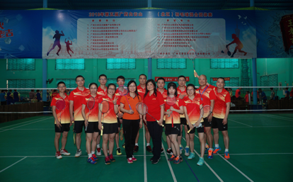 集团工会主席李锦云、王老吉大健康工会主席梁全心与王老吉大健康羽毛球队合影