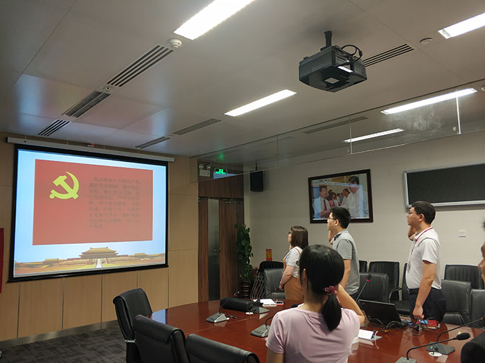 会上,全体党员支部书记辛昊的带领下,进行“学宣言、温誓词、履承诺”活动。全体党员高举右拳,字字铿锵地宣读入党宣誓誓词,重温了正式加入中国共产党的那一个神圣庄严的时刻。