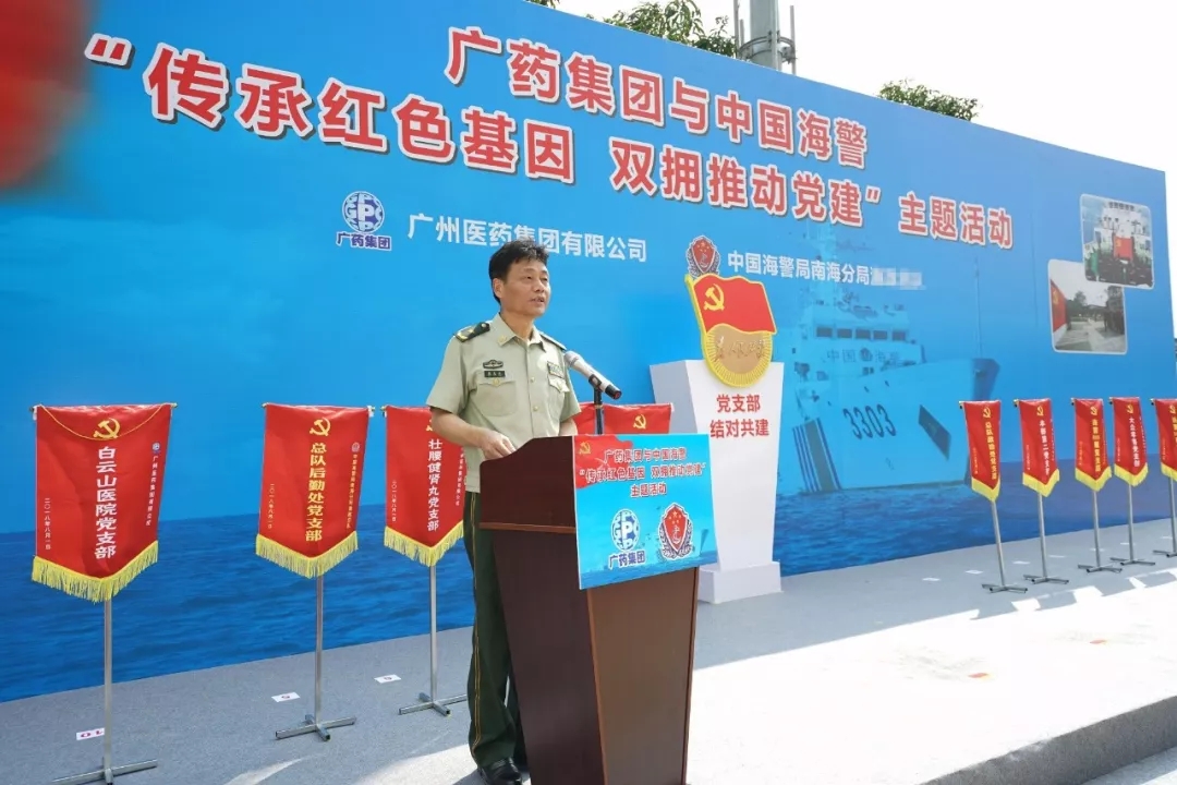 中国海警局南海分局党委书记、局长陈天平少将作主题讲话,军地结对促建支部书记代表分别发言,海警某部代理政委赵伟主持活动。海警某部代理总队长罗坚雄及有关领导,广药集团党委副书记冼家雄、工会主席李锦云、双拥工作部门负责人及司属企业党组织书记、政工部门负责人、总队官兵代表等共计160人共同见证主题活动仪式,并参观中国海警文化展厅及舰船。